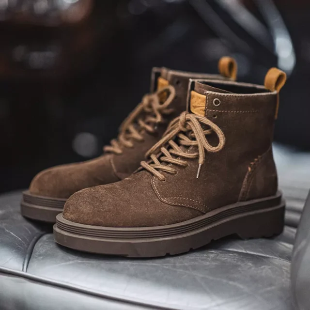 Made with high-quality suede and reinforced stitching, these boots are built to handle the demands of everyday wear. The thick rubber outsole offers superior traction and grip on a variety of surfaces, making them ideal for both city streets and rough terrain. Inside, a breathable canvas lining and cushioned fabric insole keep your feet warm, comfortable, and supported even after long hours on your feet. The lace-up closure allows for a customizable fit, while the round toe design ensures natural movement and plenty of room.