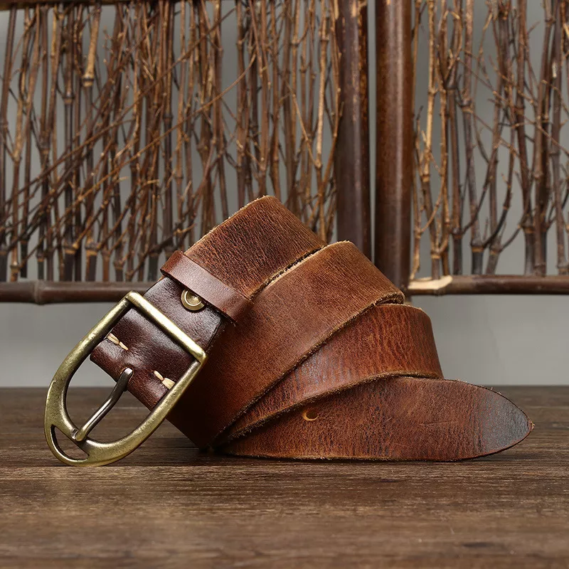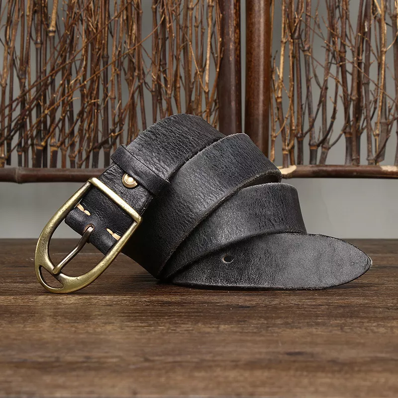 Discover a belt that blends rugged charm with refined craftsmanship. This men’s vintage genuine leather belt is made from the first layer of cowskin, giving it unmatched strength and a rich natural texture. At 1.5 inches wide, it fits perfectly through most jean loops and casual trousers, making it an essential accessory for daily style. Whether you are dressing for work, weekend outings, or casual evenings, this belt elevates your look with ease.