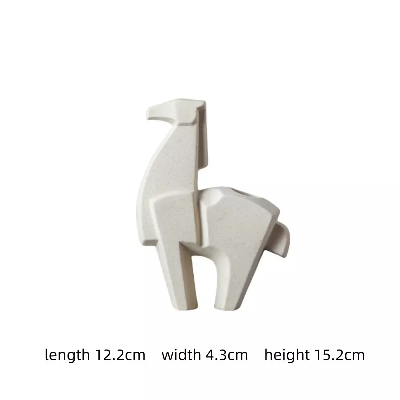 Introducing a unique blend of functionality and contemporary art: the Minimalist Geometric Horse Ceramic Sculpture. This beautifully crafted figurine is not only an abstract animal sculpture, but also doubles as a modern vase for dried flowers, bringing a charming touch of whimsy to any room. With its geometric design, it’s a stunning way to elevate your home decor while adding a practical element that’s perfect for arranging dried flowers or greenery. Whether displayed on a shelf, desk, or mantle, it’s sure to become a conversation piece in any space.