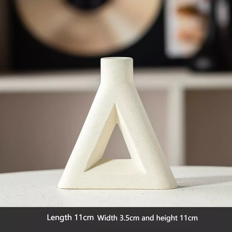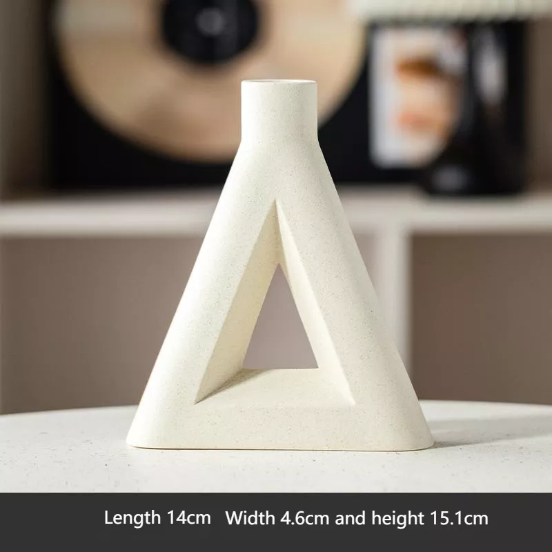 Elevate your home decor with the Minimalist Geometric Triangle Ceramic Vase. This striking piece combines clean lines and a modern aesthetic, making it a perfect addition to any Nordic, Minimalist, or Contemporary interior. Featuring a sleek triangular form with a hollow center, it adds a touch of abstract art to your space while maintaining a refined, understated charm.