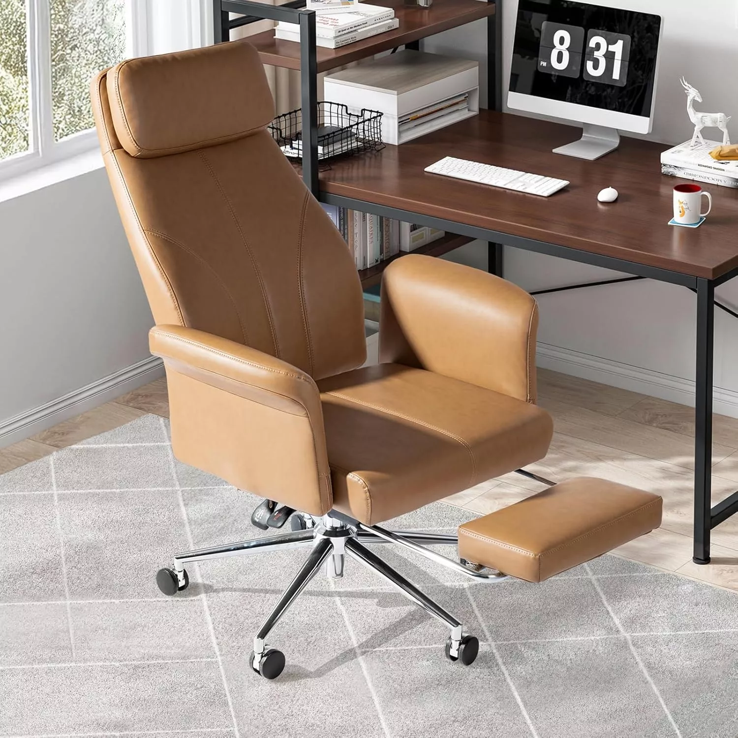 Modern Ergonomic Leather Office Chair with Reclining Backrest & Footrest