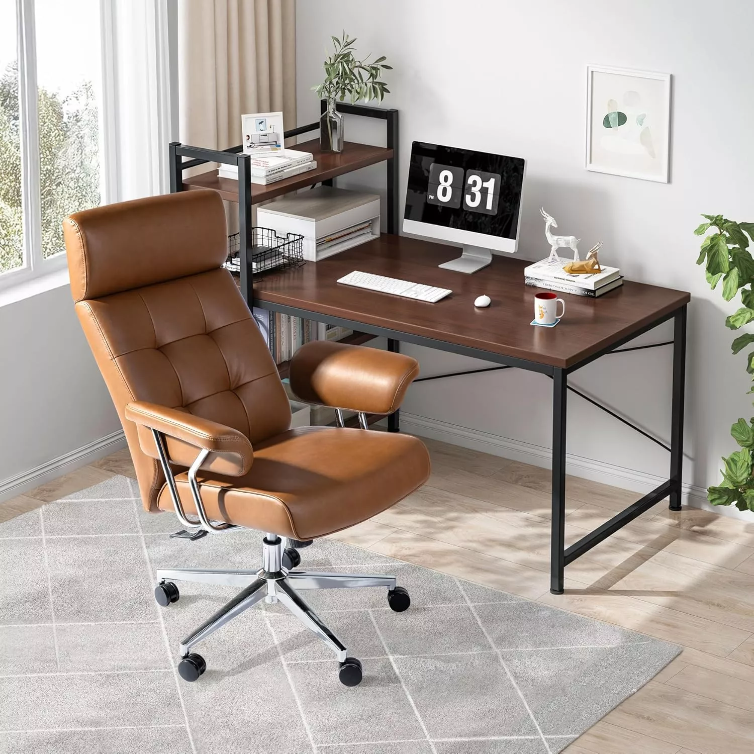 Redefine your office experience with this sleek and modern ergonomic leather office chair. Designed with premium comfort and industrial flair in mind, this adjustable swivel work chair effortlessly blends function and fashion. Whether you’re powering through a full workday or enjoying a well-earned break, this chair supports you every step of the way. With its reclining backrest, integrated footrest, and luxurious quilted detailing, it’s more than just a chair — it’s your new daily essential.
