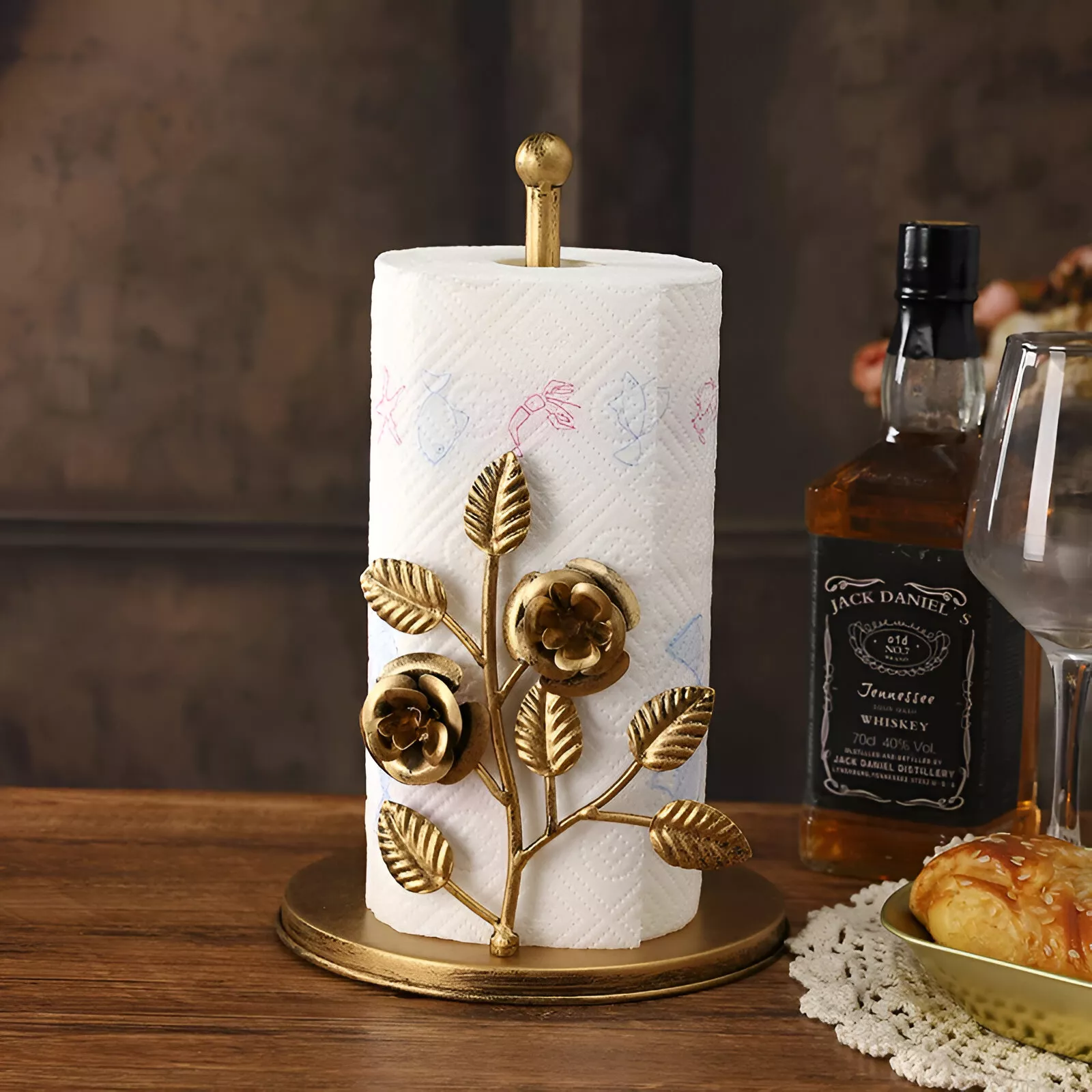 Turn everyday dining and food prep into a more elegant experience with this European-style vertical paper roll holder. Designed with a decorative floral look and a clean modern finish, this smart table-top rack keeps paper towels or plastic wrap upright, easy to reach, and beautifully displayed. It blends practical storage with eye-catching design, making it a functional accent for your kitchen, dining table, or countertop.