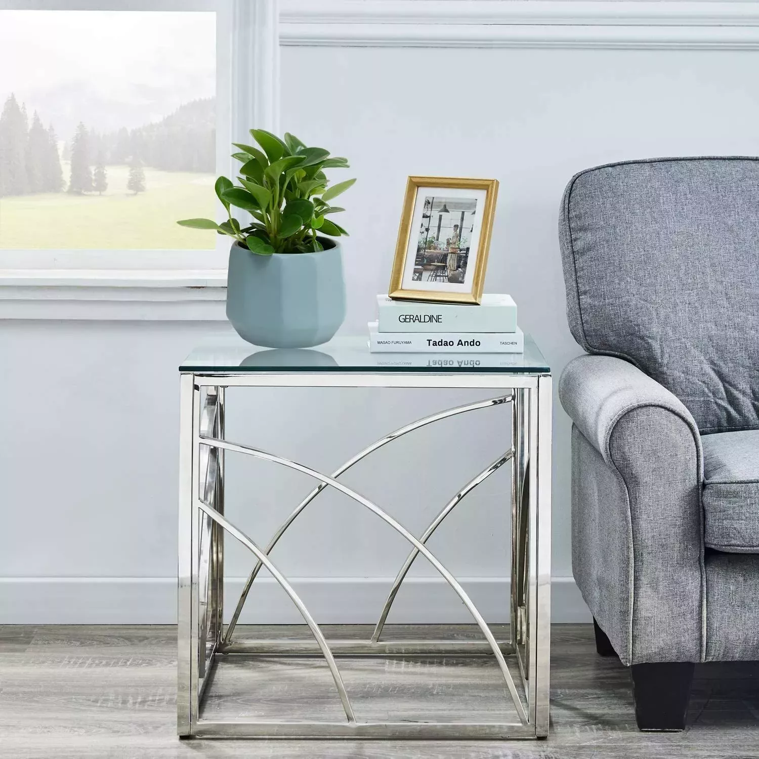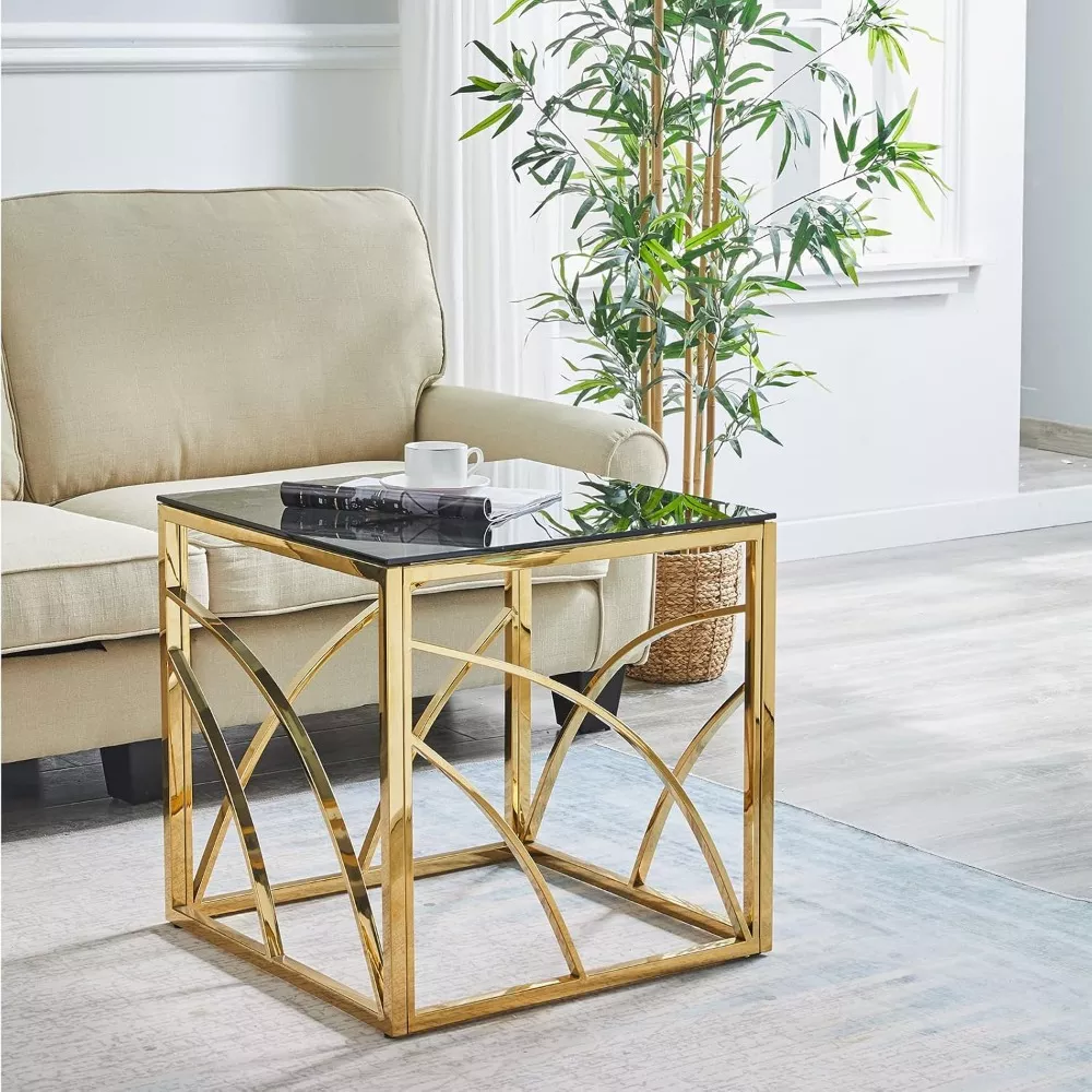 Add a touch of luxury and modern charm to your space with this square gold accent end table. Designed for style and versatility, this sleek table blends contemporary flair with practical function. With its shimmering gold stainless steel frame and clear tempered glass top, it creates an open, airy feel while exuding sophistication. Whether used next to a sofa, beside your bed, or in an office corner, this statement piece instantly elevates your interior.