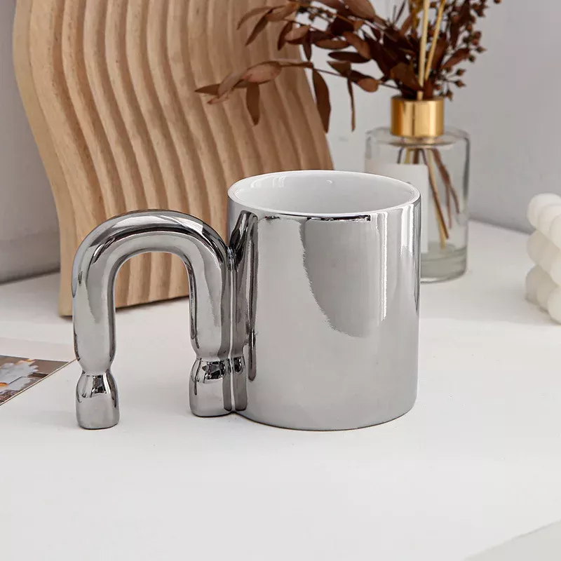 Start your mornings or elevate your workspace with the Modern Irregular Silver Ceramic Coffee Mug — a stunning fusion of art and functionality. Designed for those who appreciate contemporary style, this irregularly shaped mug shines with a sleek electroplated silver finish that adds a touch of sophistication to your table. It’s not just a cup; it’s a statement piece that enhances every moment, from your first coffee of the day to cozy evening tea sessions.
