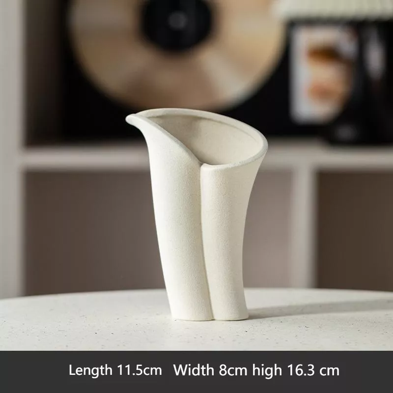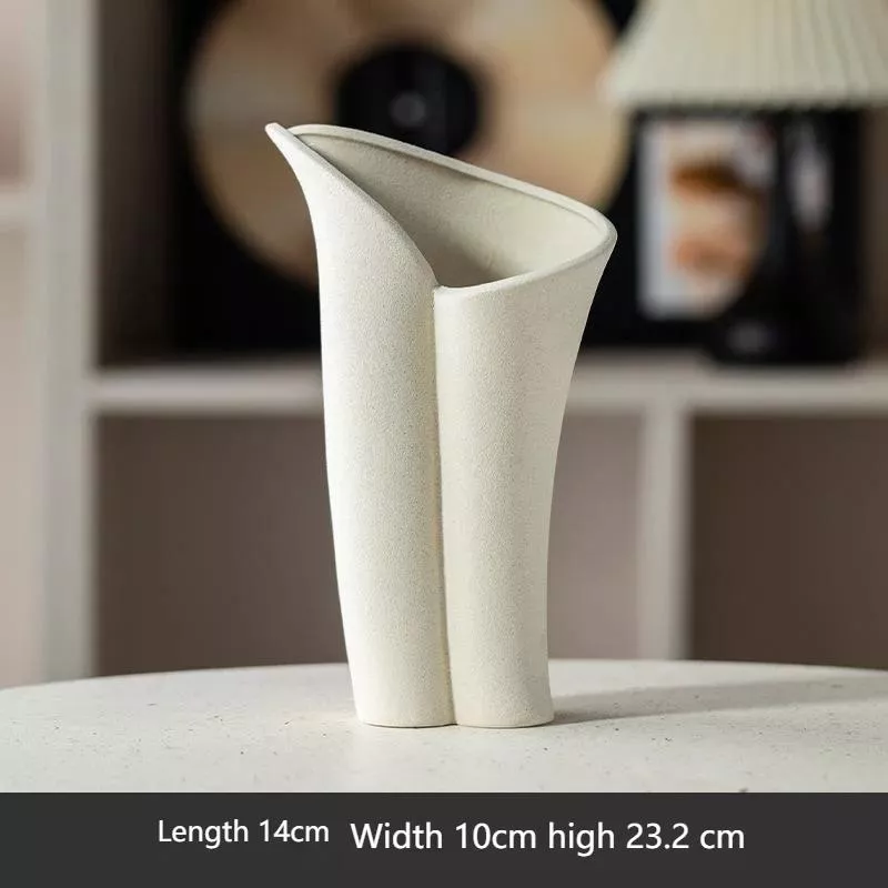 The smooth, matte finish of the ceramic pairs effortlessly with its modern abstract shape, making it an ideal choice for those who appreciate both form and function in their home decor. Designed to hold dried flowers, grasses, or small ornamental arrangements, this vase brings a burst of nature indoors while complementing contemporary aesthetics.