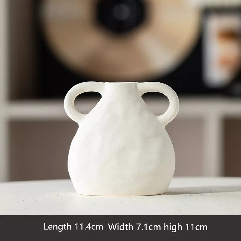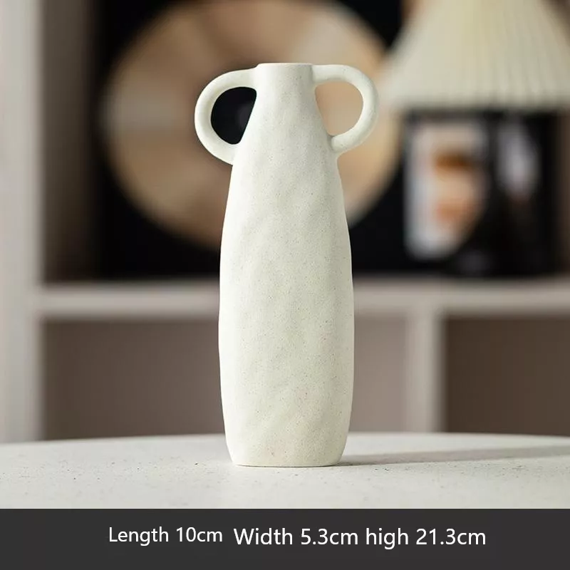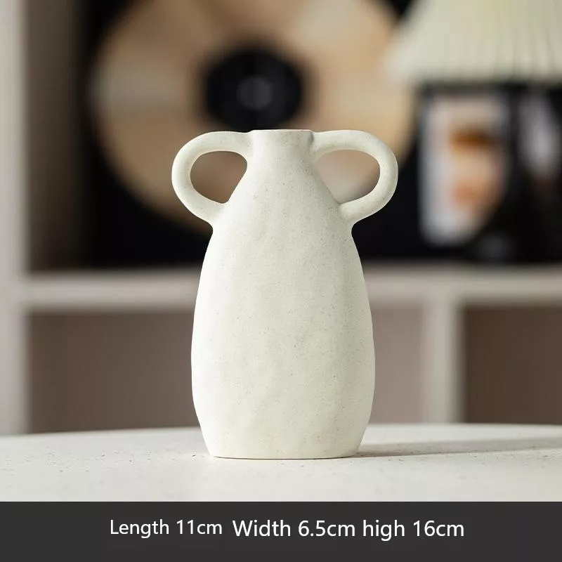 Nordic Matte Ceramic Double Handle Vase – Minimalist Home Decor for Dried Flowers