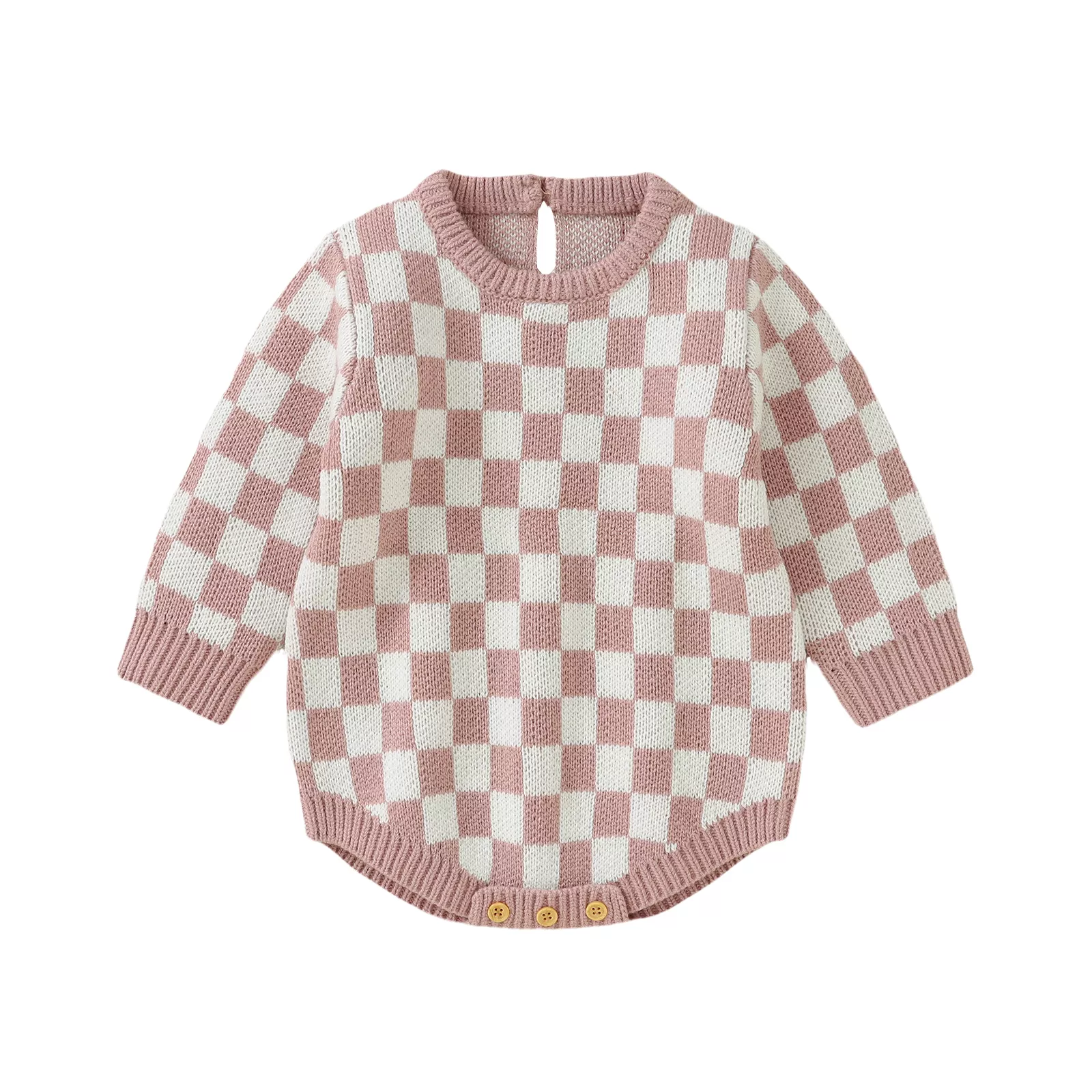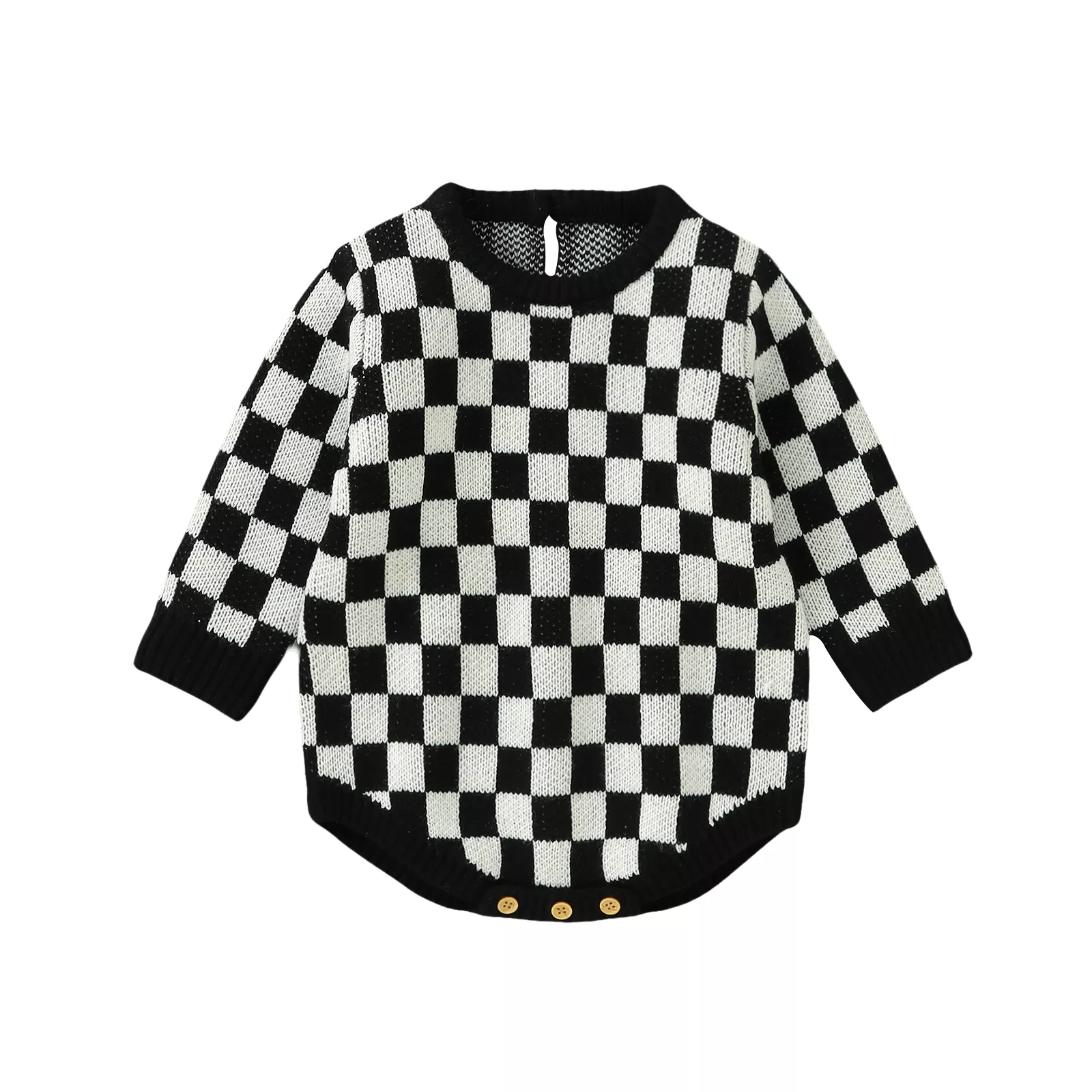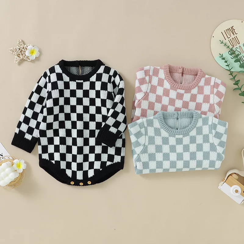 Plaid Knit Baby Bodysuit Long Sleeve Unisex Romper