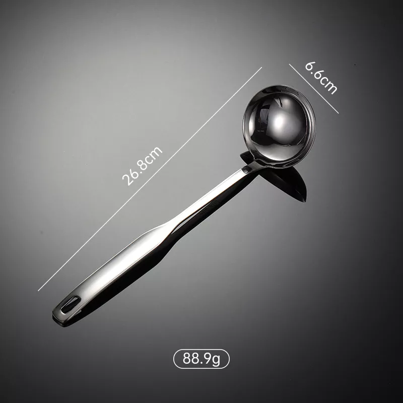 Crafted from high-grade 304 stainless steel, this spoon is resistant to corrosion, heat, and stains. It’s LFGB-certified, ensuring it’s safe for skin contact and food use. The mirror-polished finish gives it a beautiful, reflective shine—perfect for both home kitchens and professional settings. Its long, square ergonomic handle offers a secure, anti-scalding grip that stays cool, even when cooking at high temperatures.