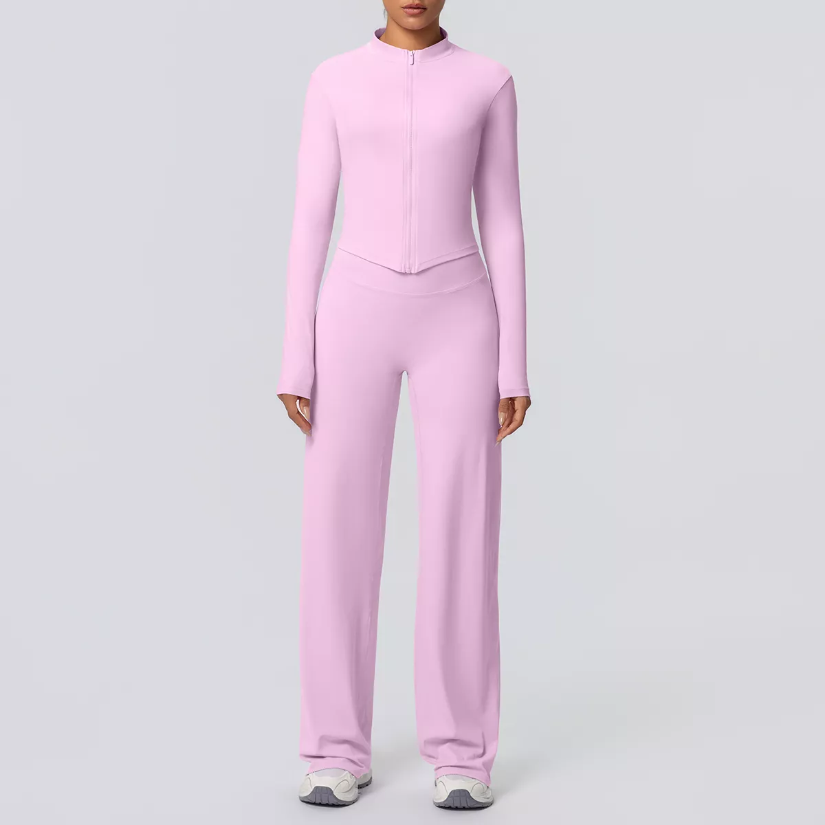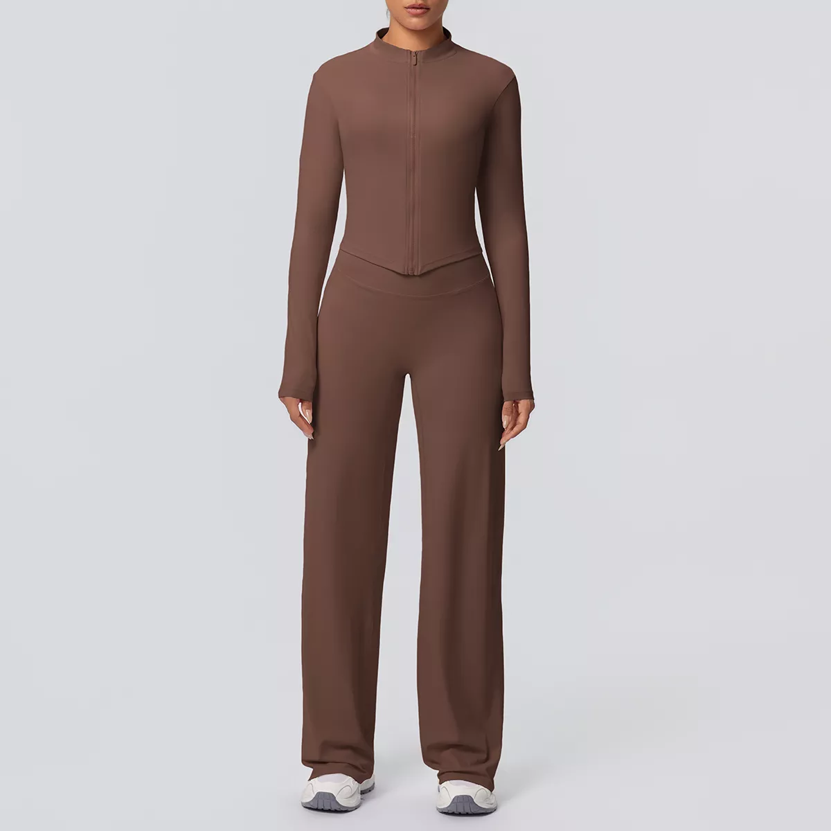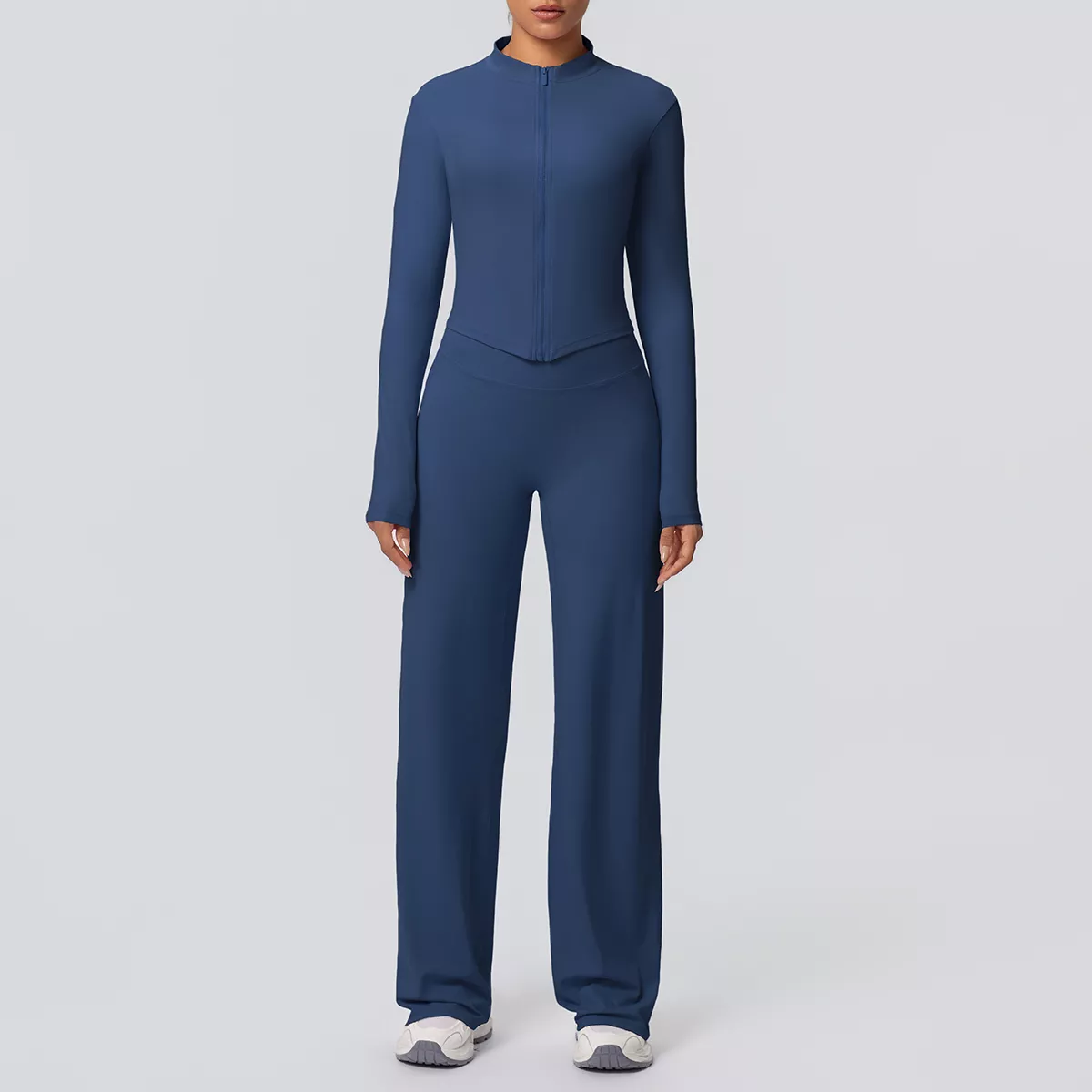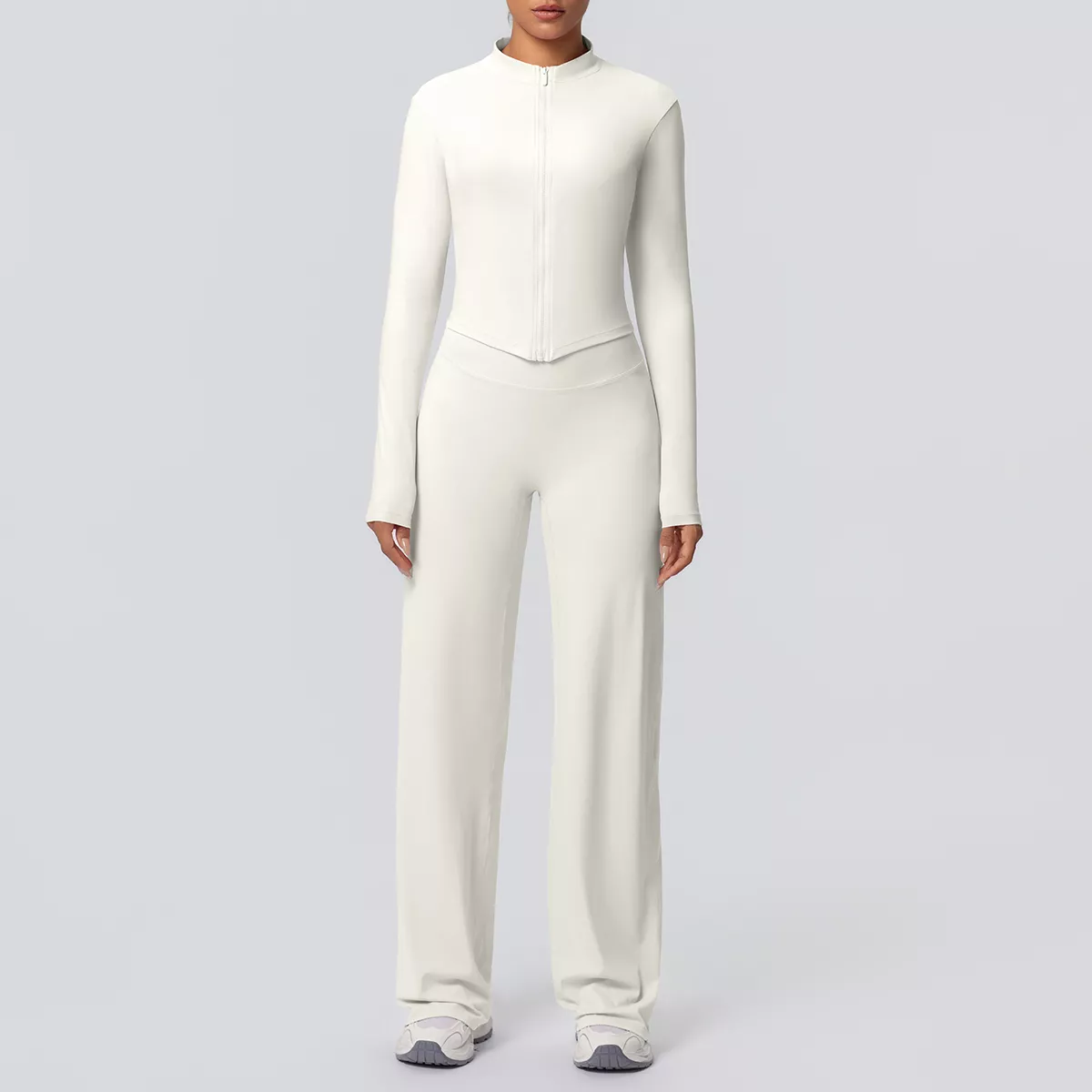 Quick-Dry Yoga Set with Zip Long Sleeve Top & High-Waist Wide Leg Pants