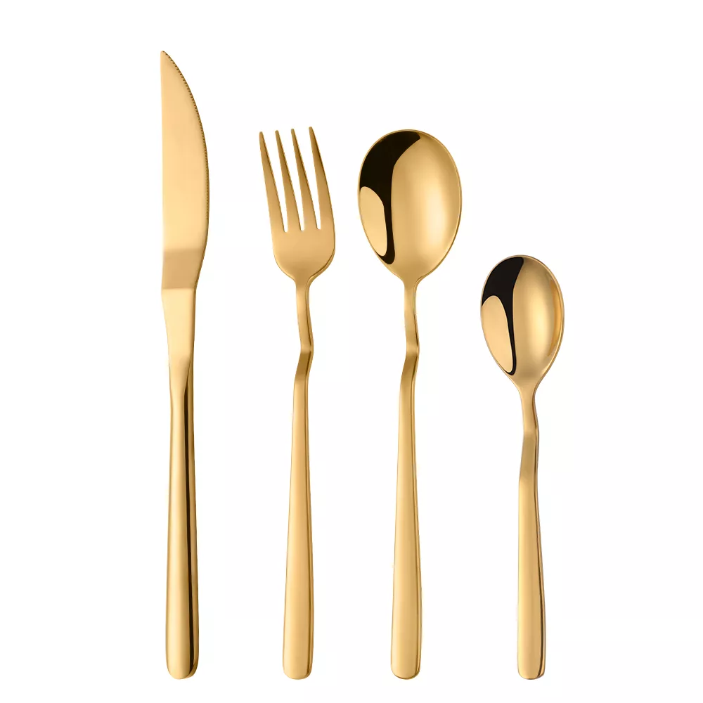 Each set includes four essential pieces — a dinner knife, dinner fork, dessert spoon, and teaspoon — providing everything you need for a complete dining experience. Available in a range of stunning colors, this set lets you choose a finish that reflects your personal style.