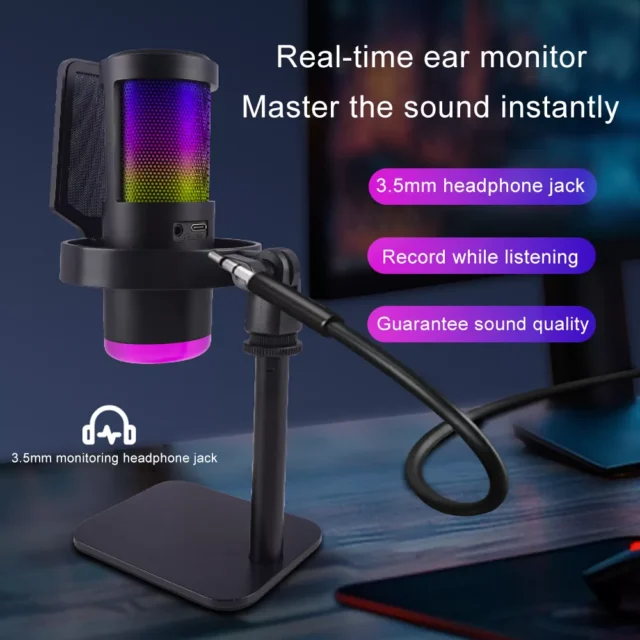 Upgrade your setup today and experience professional sound made simple. Get the RGB USB Condenser Microphone and let your voice shine like never before!