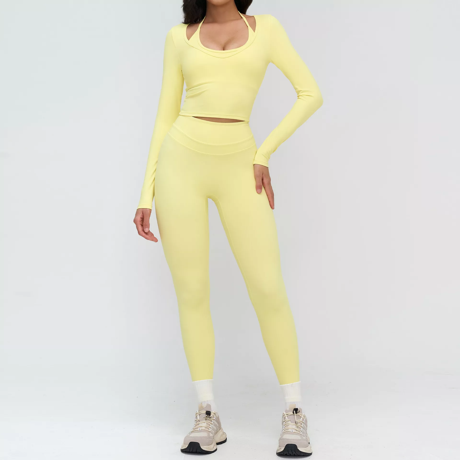 If you want an athletic outfit that works as hard as you do, this yoga set is the perfect choice. It combines function, comfort, and style in one easy look. Add it to your wardrobe today and experience a workout outfit that keeps up with every move you make.