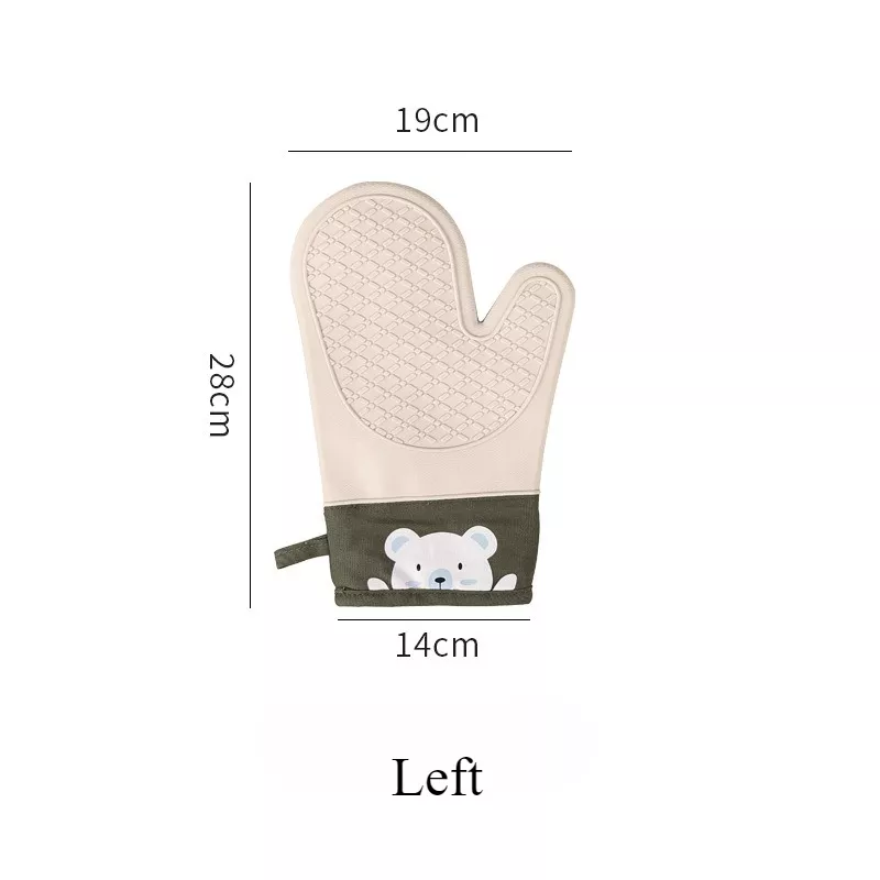 These oven mitts are more than just kitchen gloves—they’re your everyday protection partner during baking, roasting, and grilling sessions. The thick insulation keeps your hands cool and safe, while the anti-slip grip ensures total control, even when handling heavy dishes. The inner cotton layer adds softness and breathability, making them comfortable for long use. Unlike ordinary mitts, the playful bear design brings warmth and personality to your kitchen space.