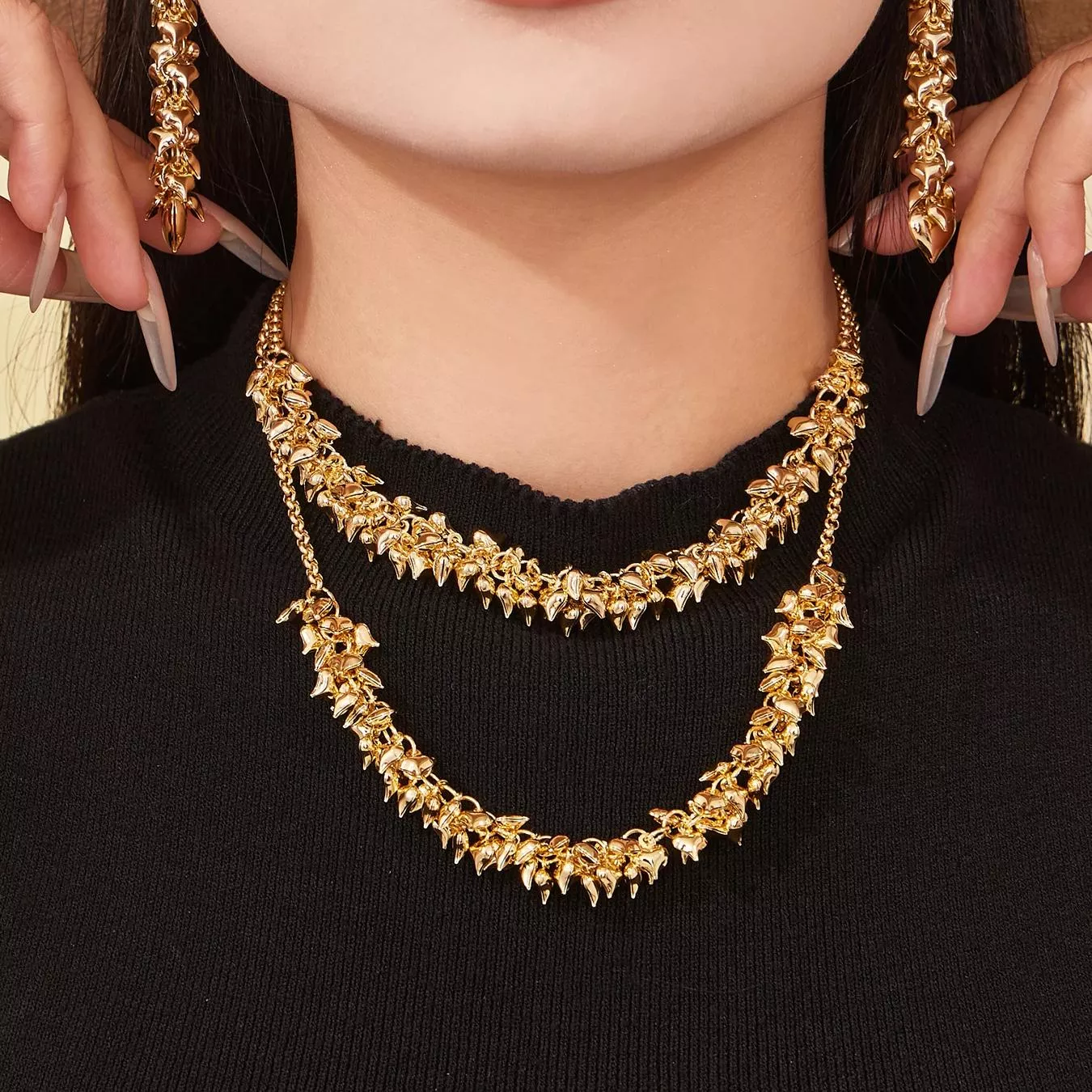 These earrings are not just accessories – they’re a statement. The leaf-inspired geometric design gives off a feeling of nature’s grace, while the irregular shape adds a modern touch. The combination makes them perfect for women who appreciate both artistry and elegance.