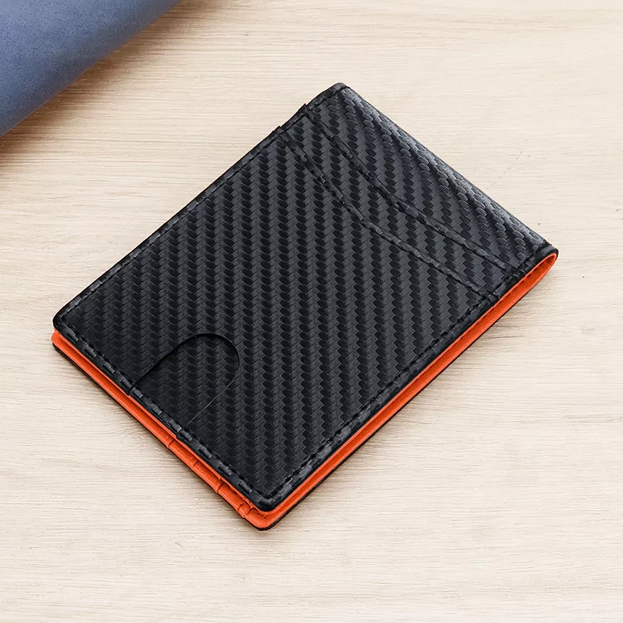 Slim Minimalist Carbon Fiber RFID Blocking Wallet for Men – Orange & Blue