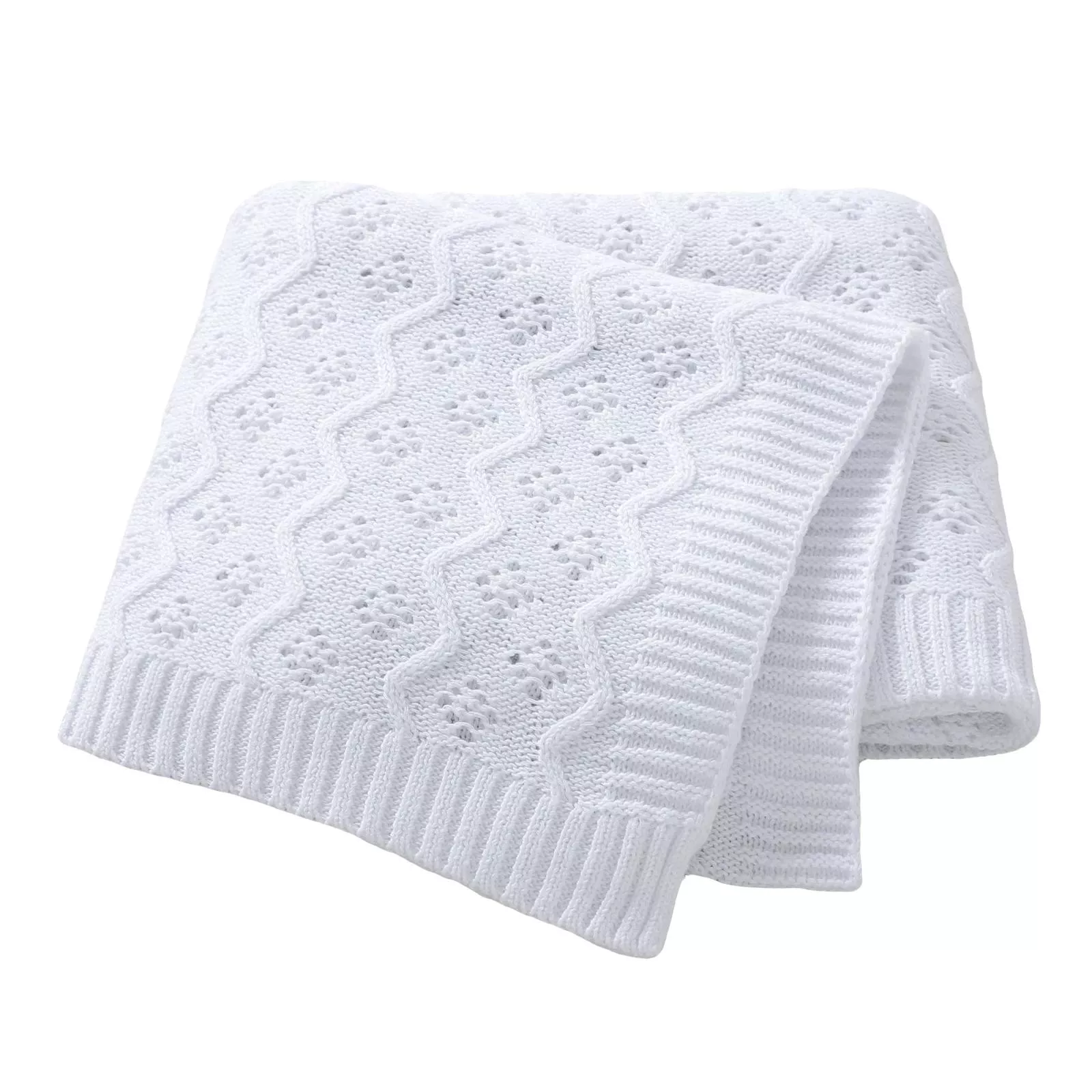 Soft Cotton Baby Blanket for Newborns, Unisex Solid Knit Swaddle Quilt 35.4 x 27.6 Inches