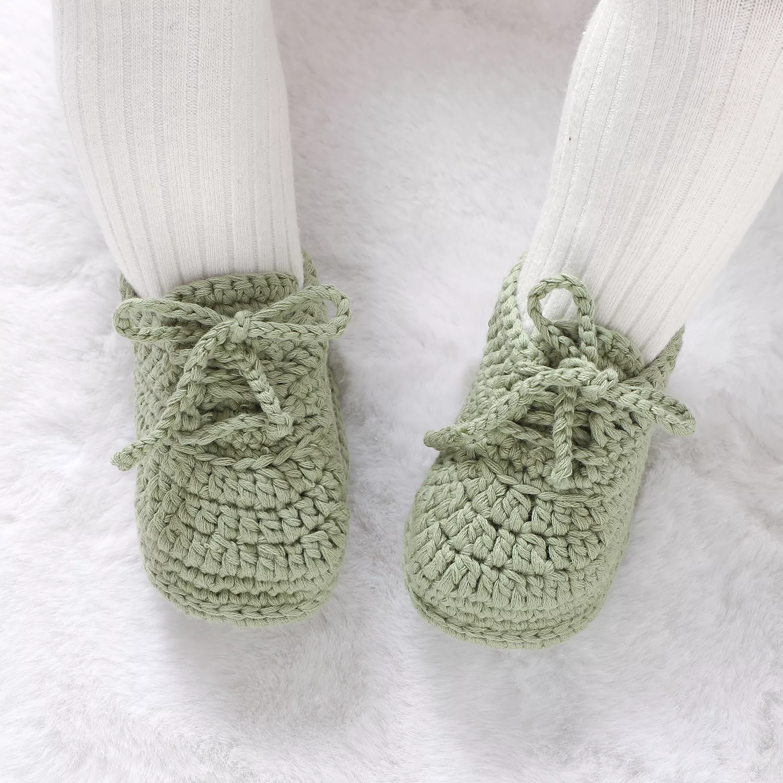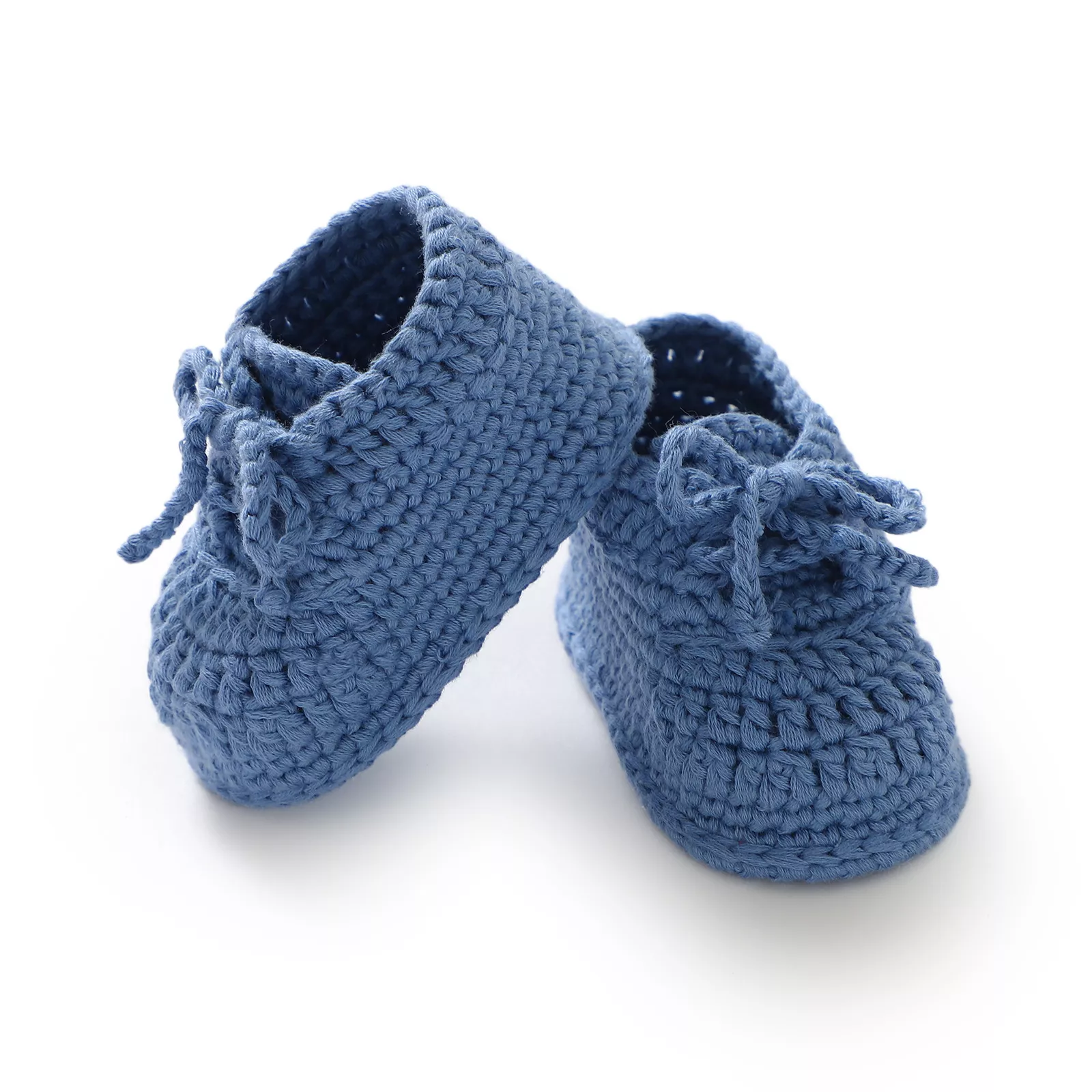 These baby booties are made with breathable cotton materials that help keep little feet feeling fresh in every season. The lace-up, cross-tied closure allows you to gently adjust the fit, helping the shoes stay securely in place without squeezing. With coverage just above the ankle, they provide extra warmth and support while remaining lightweight and flexible for natural movement.