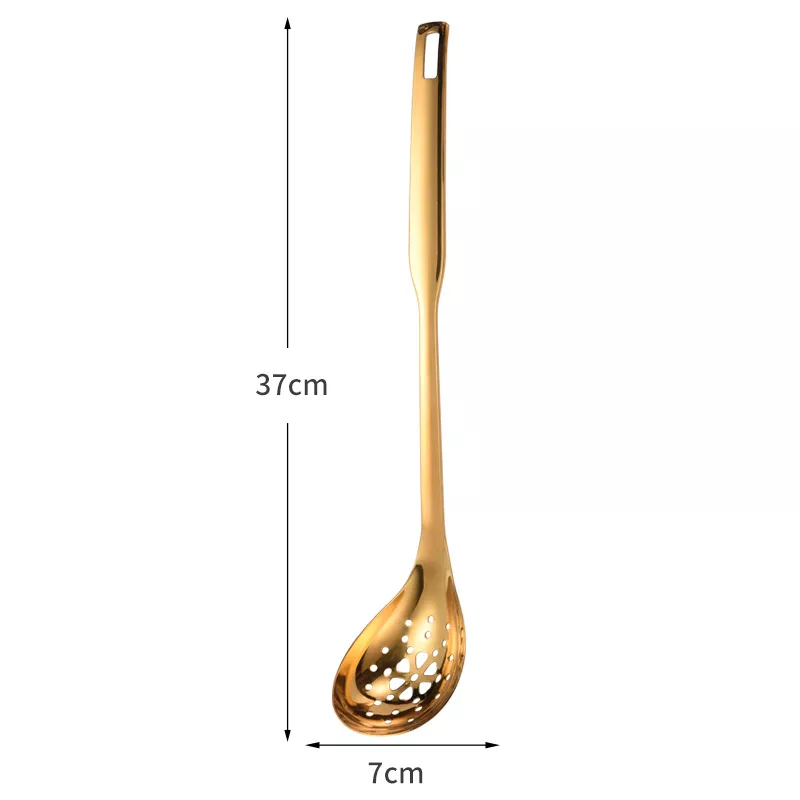 This stainless steel colander spoon is your go-to tool for a variety of cooking moments. Use it while boiling pasta, skimming oil, serving soup, or ladling porridge. It’s ideal for both home cooks and professional chefs who value performance and presentation in the kitchen. Available in elegant gold or sleek silver finishes, it also adds a modern touch to your kitchen décor.