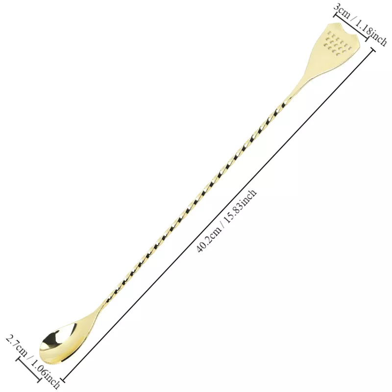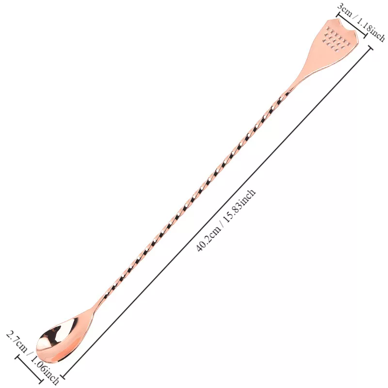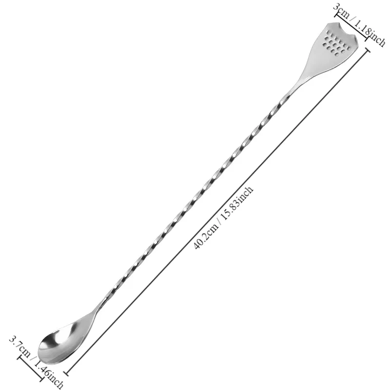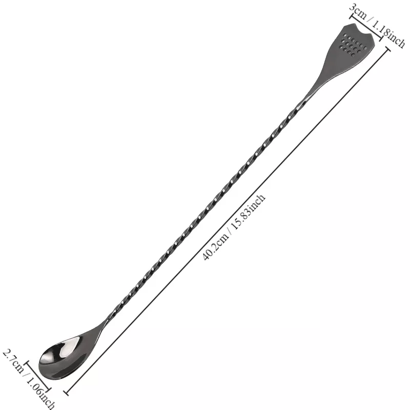 Made from 304 stainless steel with a polished finish, this mixing spoon is built to last. Its rust-resistant and corrosion-proof surface keeps its shine through endless nights of mixing. The twisted helical handle offers superior control, ensuring an effortless grip for smooth rotation while stirring. Measuring approximately 16 inches (40.2 cm) long, it’s perfectly sized for tall glasses, shakers, and mixing pitchers, making it a go-to tool for any cocktail setup.