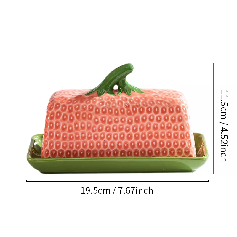 Transform the way you serve and store your favorite foods. With its elegant design and versatile purpose, the Strawberry Ceramic Butter & Cheese Plate makes a lovely addition to any home. Bring color, charm, and function to your kitchen — order yours today and enjoy a taste of cheerful sophistication with every meal!