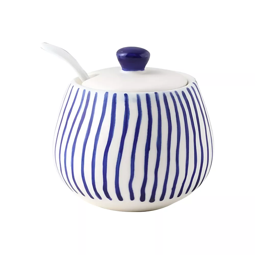 Upgrade your kitchen with this hand-painted striped ceramic seasoning jar and experience the perfect blend of style, convenience, and quality. Bring elegance to your cooking rituals and make seasoning a joy rather than a chore. Add this charming jar to your kitchen collection and enjoy fresh, flavorful meals every day.