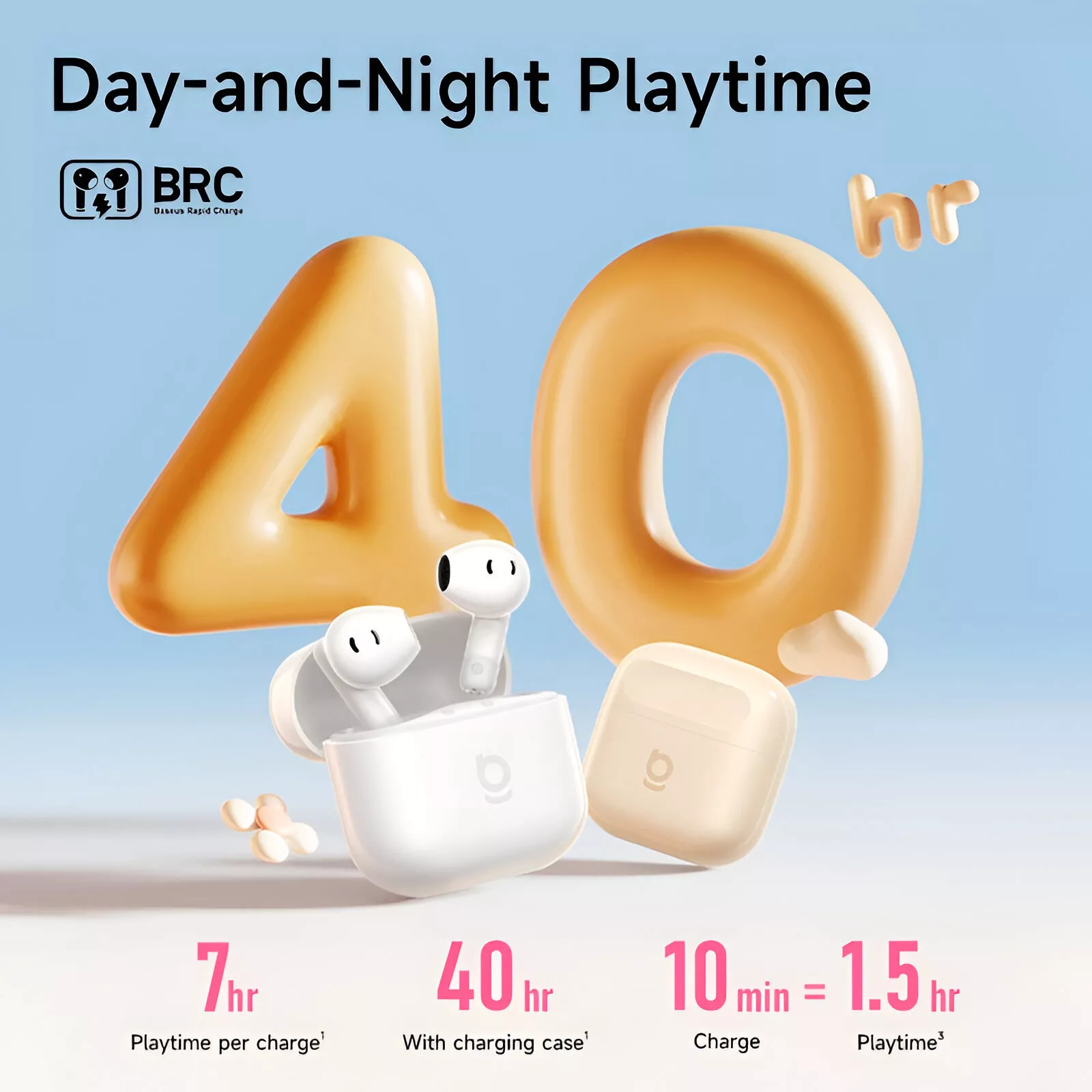 Enjoy up to 7 hours of continuous listening per charge, with a total of 40 hours using the charging case. Need a quick boost? A 10-minute rapid charge provides 1.5 hours of playtime, keeping your music going throughout the day and night.