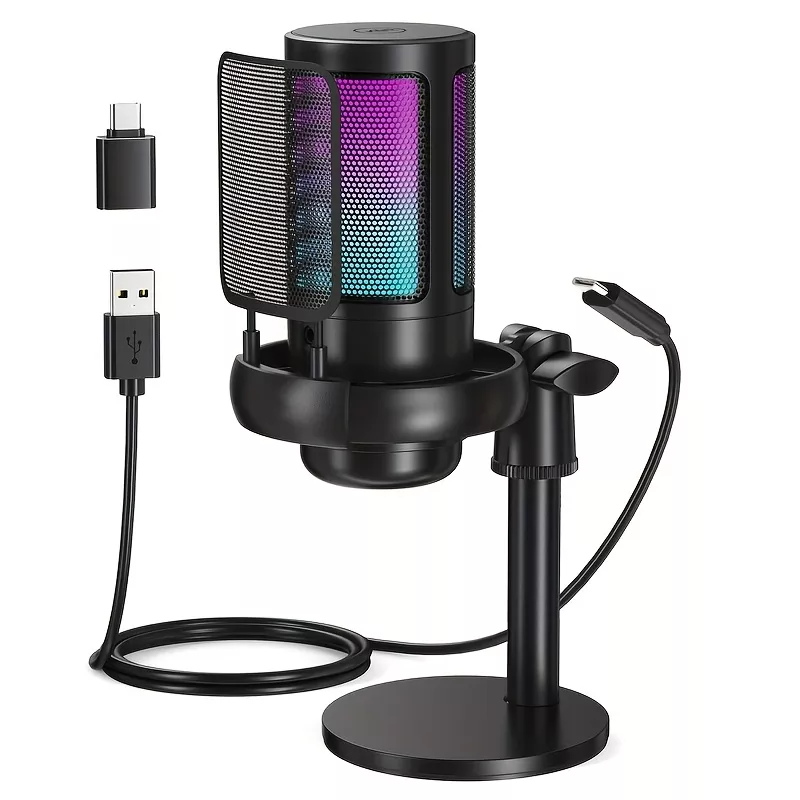 USB Cardioid Condenser Microphone with RGB Mute & Tripod Stand