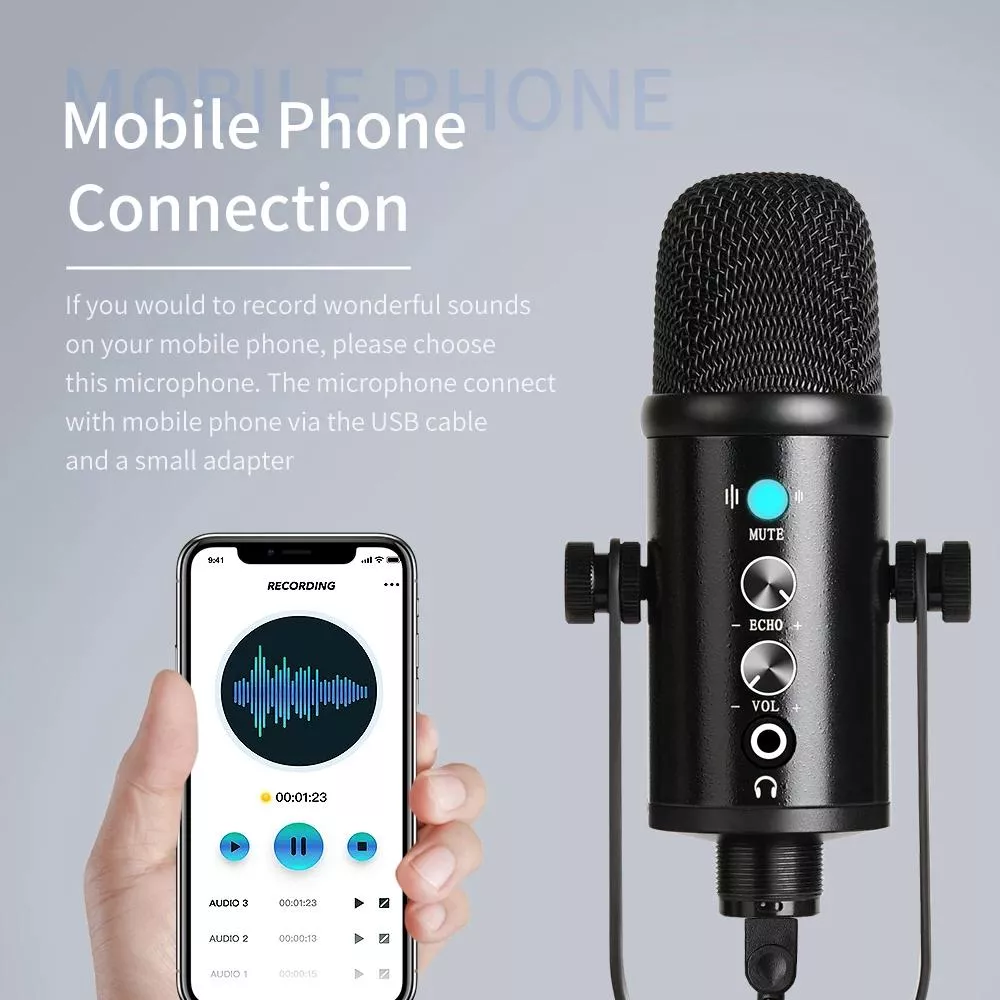 Upgrade the way you sound with this professional USB condenser microphone designed for creators, gamers, singers, and remote professionals. Whether you are recording vocals, streaming live, teaching online, or hosting meetings, this microphone delivers clean, natural audio that instantly makes your voice stand out. Just plug it in, adjust your settings, and start creating with confidence.