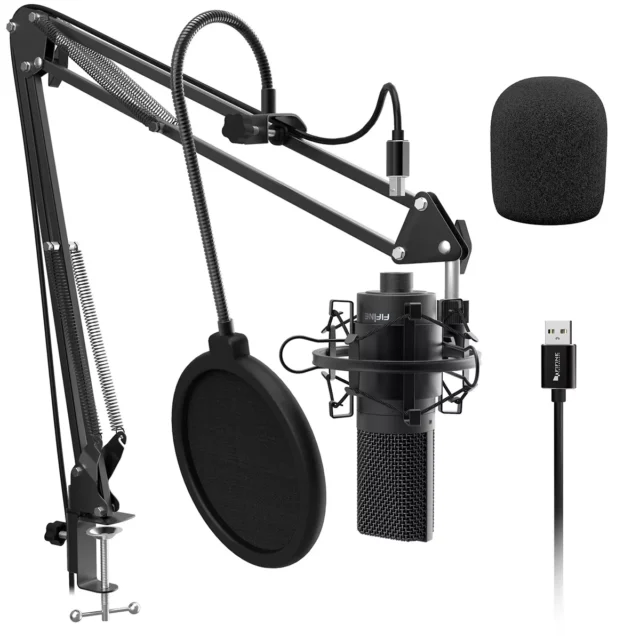 USB Studio Microphone Kit with Boom Arm, Shock Mount & Pop Filter