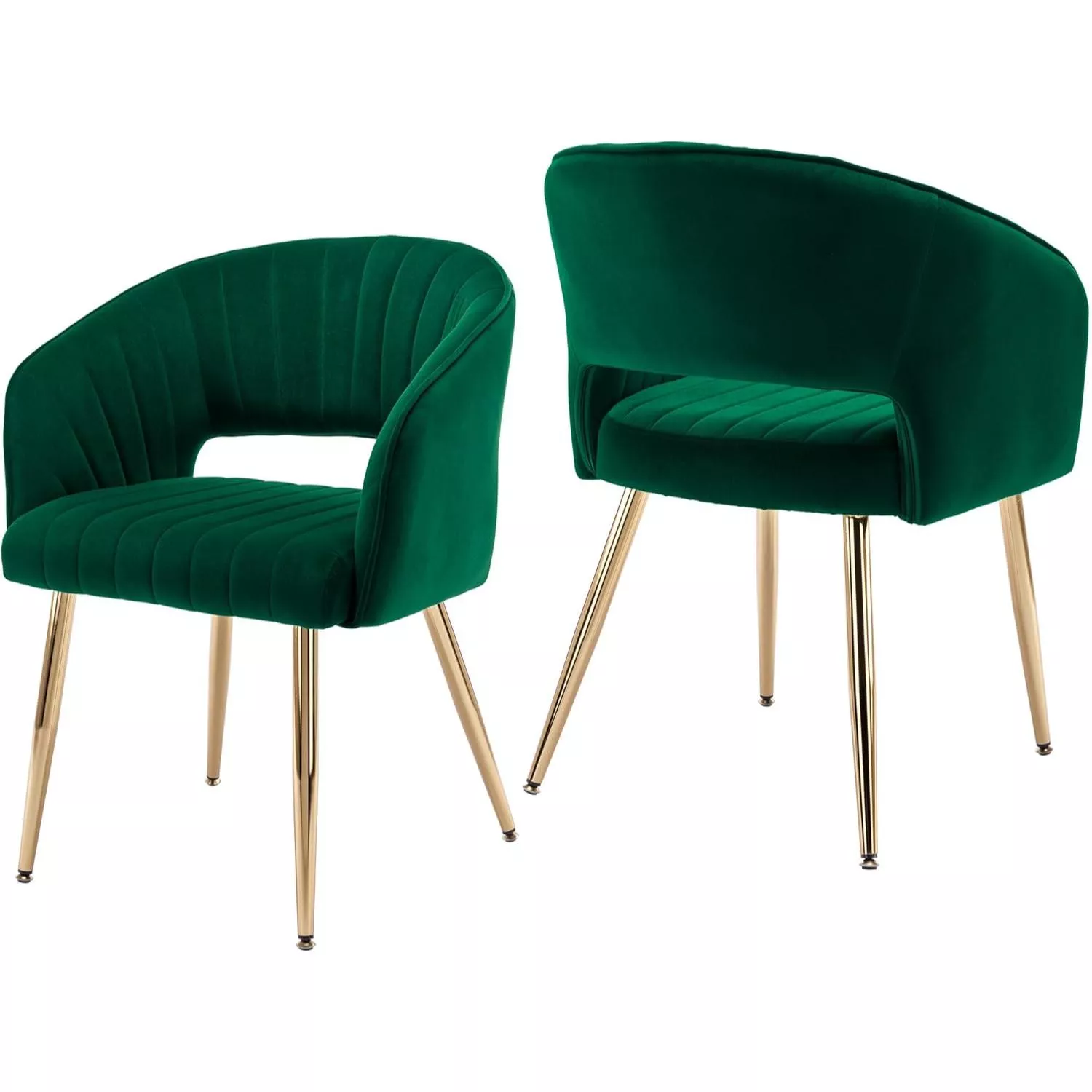 Velvet Upholstered Dining Chair with Gold Metal Legs and Tufted Back, Modern Accent Armchair