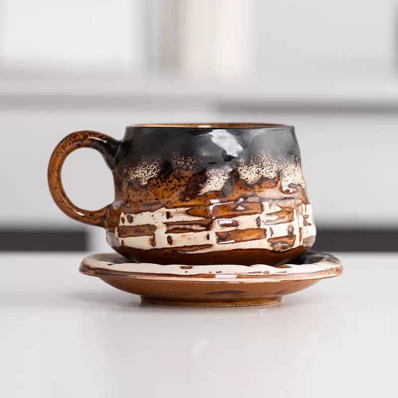 Each mug is crafted from premium quality ceramic using traditional kiln glazing techniques, ensuring durability and a smooth, elegant finish. The subtle variations in color and texture make every cup truly one-of-a-kind. Its eco-friendly design means you can enjoy your favorite beverages without compromising your values. The sturdy handle provides a comfortable grip, while the matching saucer adds a touch of refinement to your table setting.