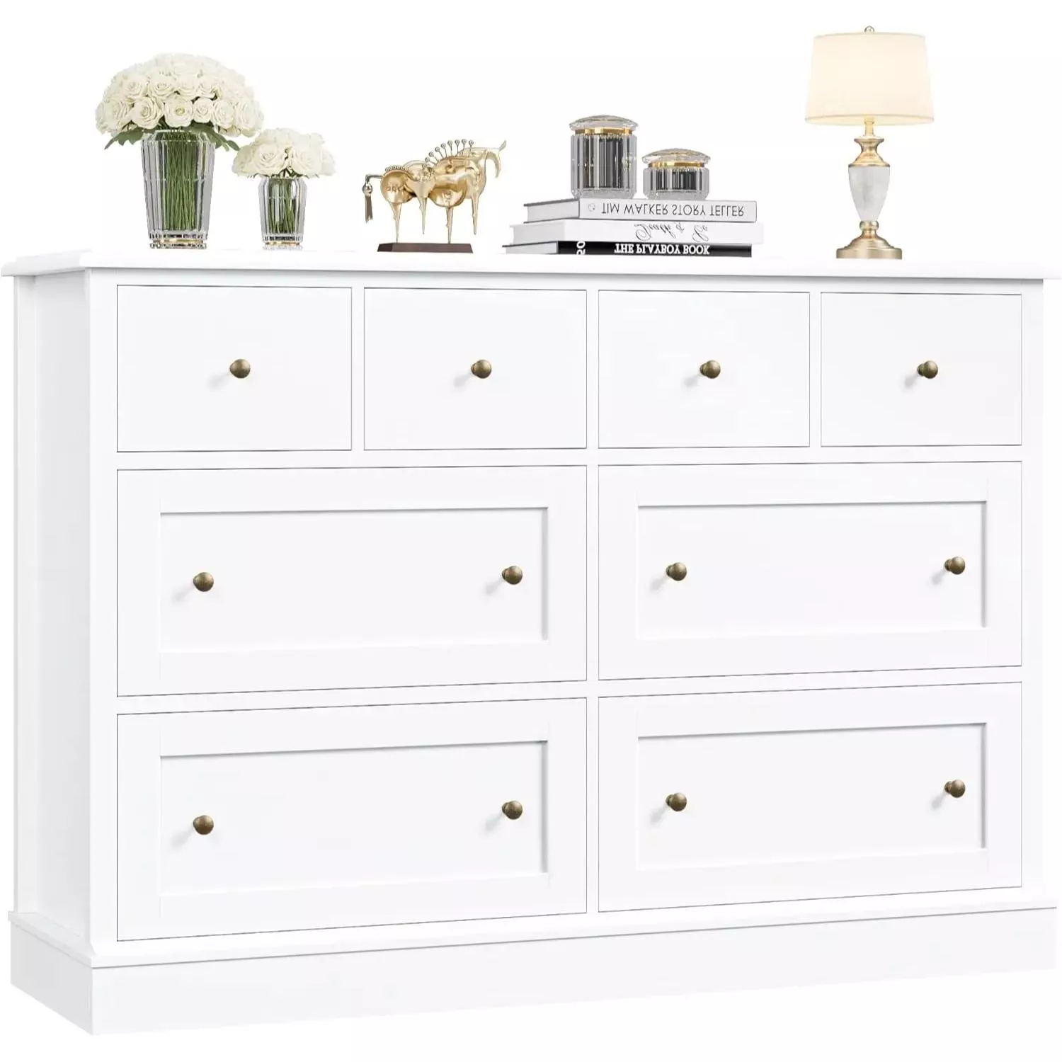 White 8-Drawer Dresser with Large Storage – 47.2″ Chest of Drawers for Nursery & Bedroom