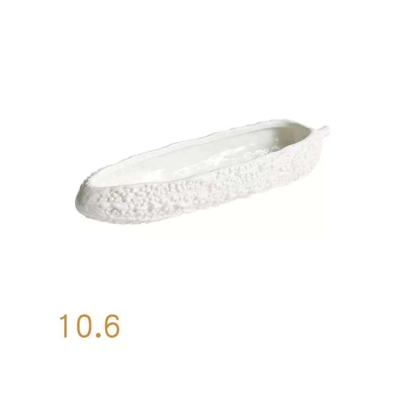 This white ceramic balsam pear shaped plate brings a refined, artistic touch to everyday dining and special occasions alike. Inspired by organic forms, its long and deep silhouette creates a striking presentation that instantly enhances the look of your table. The clean white finish highlights the natural colors of your food, making every dish feel thoughtfully prepared and beautifully served.