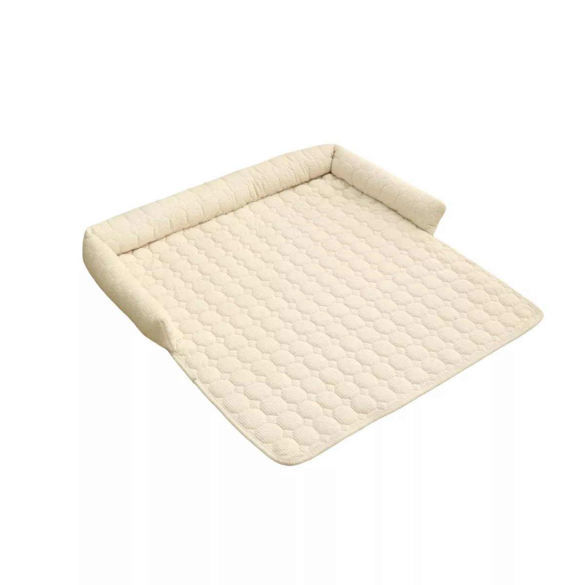 Made from 100% breathable cotton, this pet sofa mat feels gentle on paws and fur while helping regulate temperature during colder months. The generously sized square shape, measuring approximately 29.5 x 29.5 inches, gives pets enough room to stretch, curl up, or sprawl out comfortably. Raised, cushioned edges create a nest-like feeling that supports the head and body, making it ideal for pets who love to feel secure while sleeping.