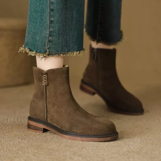 Stay stylish and comfortable all season long with these Winter Genuine Leather Suede Ankle Boots. Designed for modern women who love both elegance and practicality, these boots combine timeless fashion with durable craftsmanship. The soft cow suede upper gives them a refined look, while the genuine leather lining ensures warmth and breathability during chilly winter days. With their chic square toe and low chunky heel, these boots effortlessly elevate any outfit — from casual jeans to dressy coats.