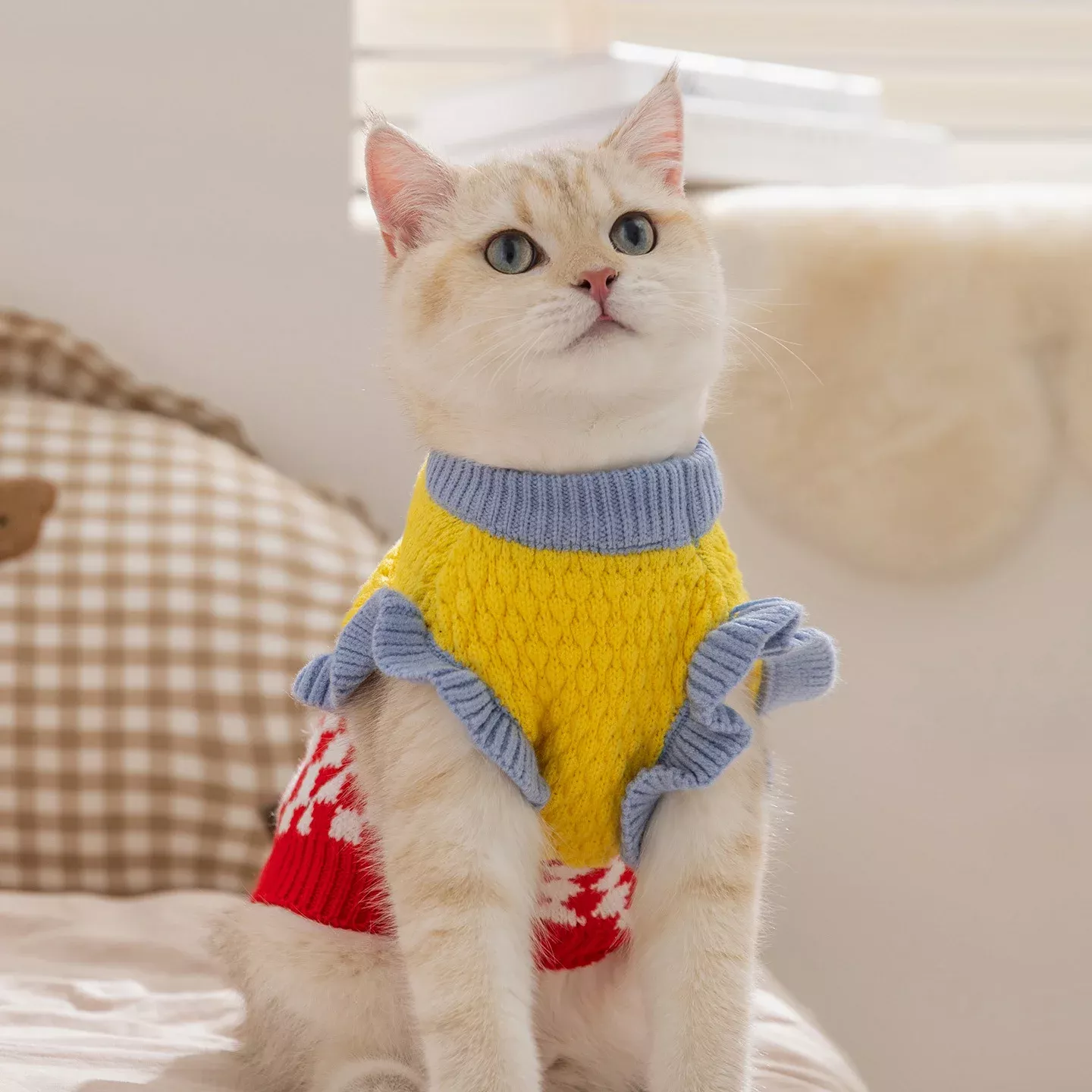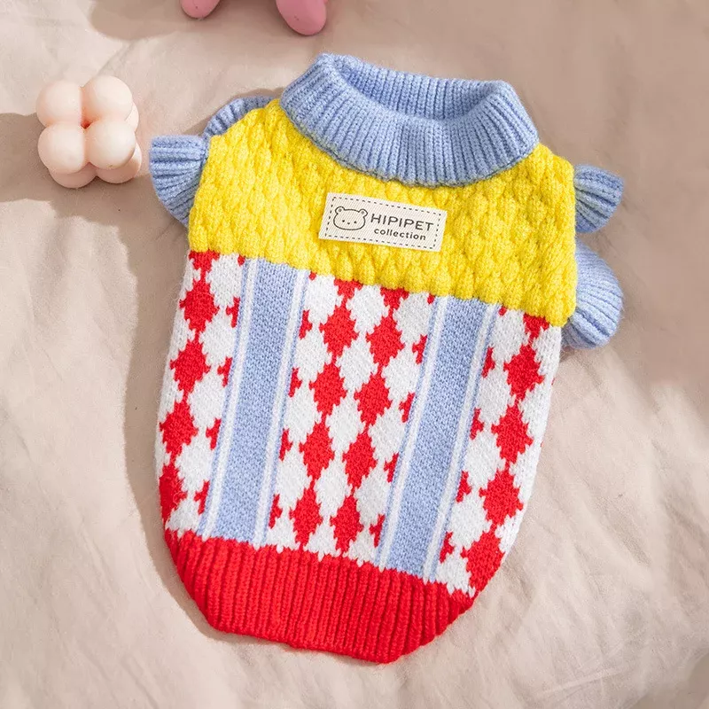 This sweater stands out with its soft wool material that gently wraps your pet in warmth while remaining breathable. The contrasting lace-inspired checkered design adds a refined, cute look that turns everyday wear into something special. Unlike bulky winter coats, this sweater offers warmth without heaviness, making it ideal for active puppies, cats, and small dogs who love to move freely.
