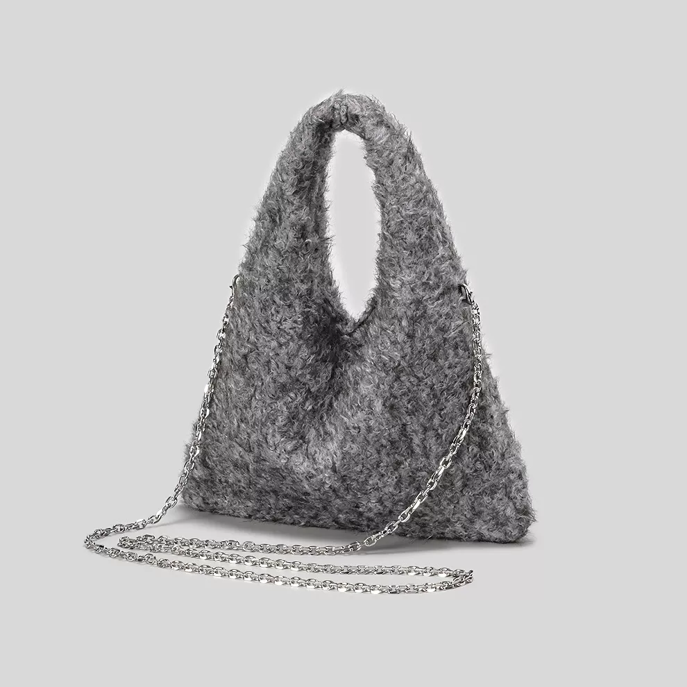 Winter Soft Plush Small Tote Bag with Chain Shoulder Strap for Women
