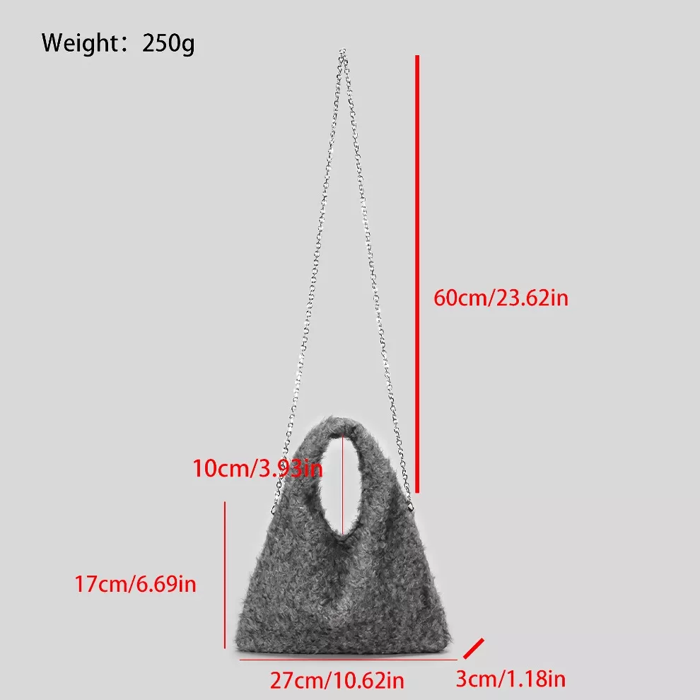 • Soft Plush Material: The faux lambswool texture gives this bag a chic, tactile feel, making it perfect for the colder months.