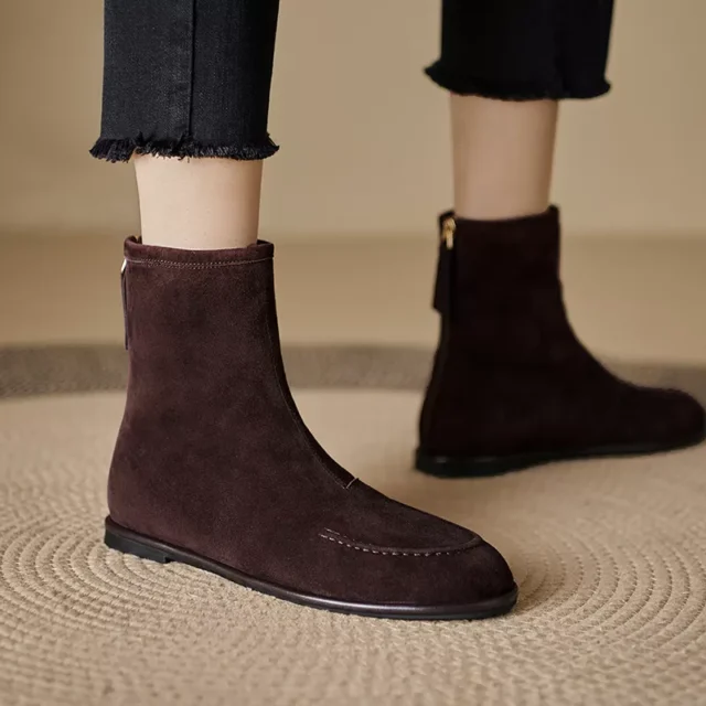 These short suede boots are perfect for winter’s casual moments — from cozy weekends to effortless daily wear. Their solid, minimalist design complements any outfit, whether jeans, leggings, or a warm wool skirt. The natural suede texture and subtle splicing detail add a touch of refinement, making them as stylish as they are practical. With the cushioned latex foam insole, every step feels supported and soft, even on long days out.