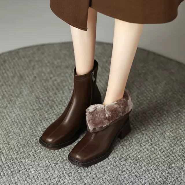 Crafted with precision and care, these boots feature a square toe design and a chunky 2.1-inch (5.5 cm) heel that offers both style and stability. The high-quality wool insole ensures lasting warmth, while the TPR outsole provides excellent grip and durability for everyday wear. Whether you’re heading to work, enjoying a weekend stroll, or meeting friends in the city, these boots are the perfect companion for your winter adventures.