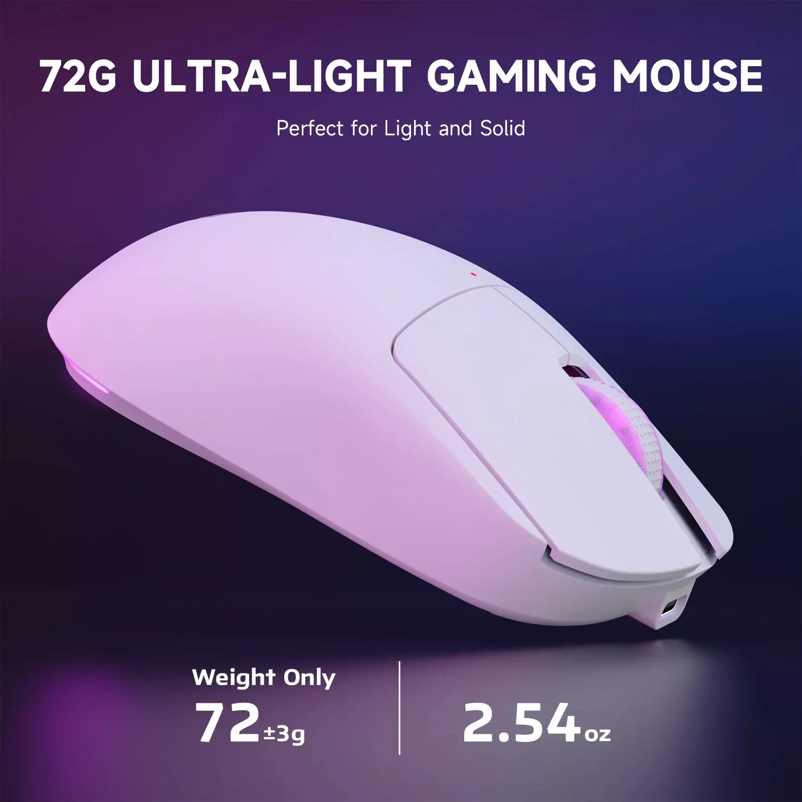 Stay connected with three versatile connection options. Choose ultra-fast 2.4G wireless for seamless gaming, Bluetooth for mobility when on the go, or wired USB-C for zero-latency performance. No matter your setup, this mouse ensures that you are always prepared for action.