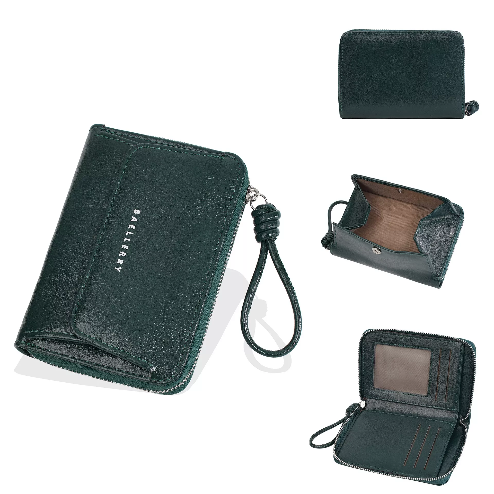• Multiple interior compartments for easy organization: card holder, coin pocket, note compartment, and photo holder.