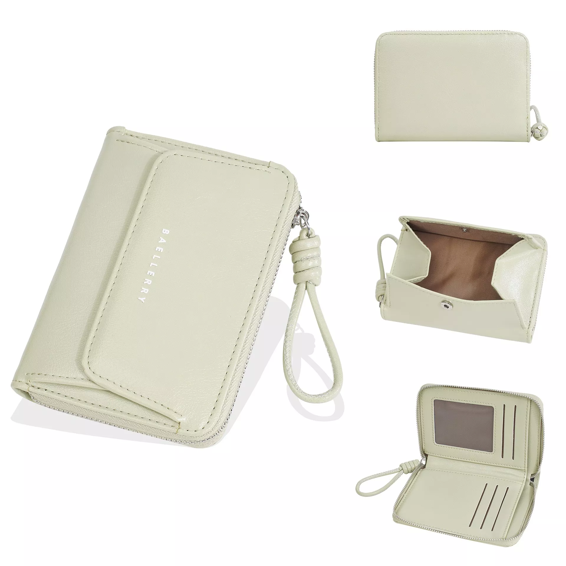 Women’s Beige Zipper Around Short Wallet with Multi-slot Card Holder & Coin Purse