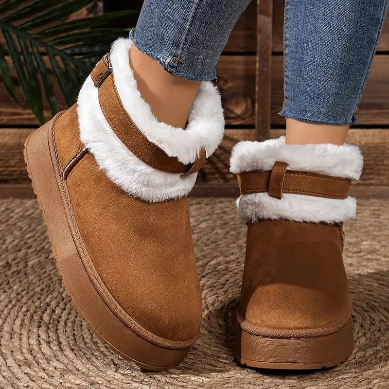 Every detail of these snow boots is made with daily comfort in mind. The cotton-padded interior and fabric insole provide gentle cushioning, while the flat platform sole helps reduce foot fatigue. With a medium platform height of approximately 1.5–2 inches, you get a subtle lift without sacrificing stability. The round toe design allows natural toe movement, making these boots ideal for long hours of wear.