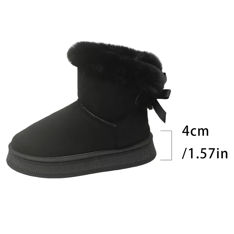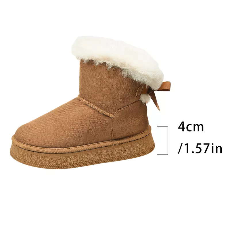 Meet your new cold-weather favorite. These cozy faux fur platform snow ankle boots are designed to keep your feet warm, comfortable, and effortlessly stylish on chilly days. With a soft faux suede finish and plush fur lining, they create a snug, cloud-like feel every time you slip them on. The sweet bow detail adds a feminine touch, making these boots as cute as they are practical.