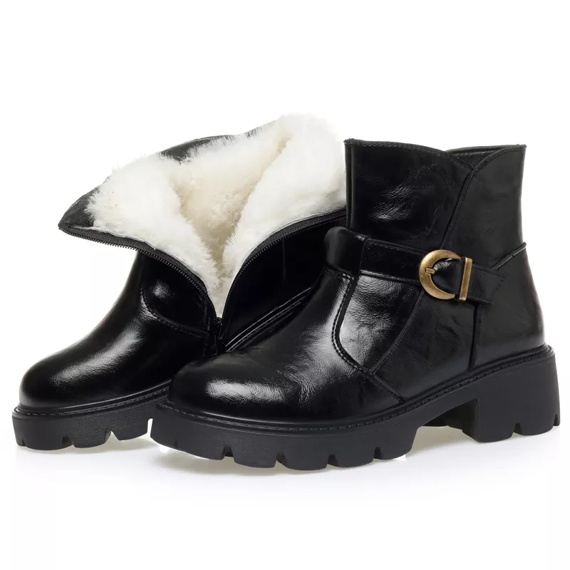 Women’s Genuine Leather Winter Wool Snow Boots with Zipper & Lace-Up