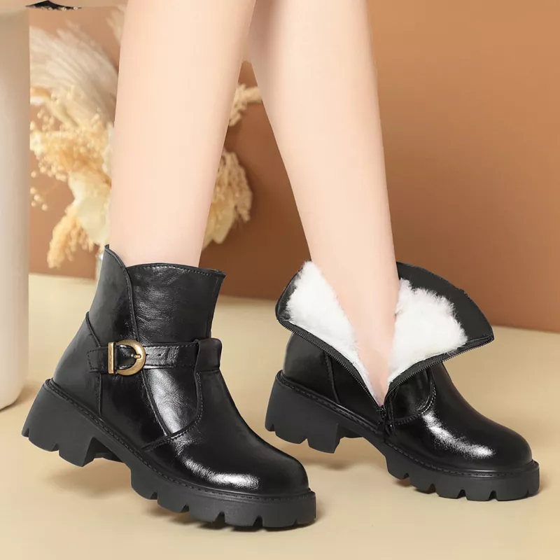 Step into winter with confidence and comfort. These women’s winter boots are designed to keep your feet warm, supported, and stylish through cold days and snowy streets. Crafted from genuine split leather and lined with soft natural wool, they deliver a cozy feel the moment you put them on. The look is timeless and elegant, inspired by classic British style, making them easy to pair with jeans, leggings, or winter dresses.