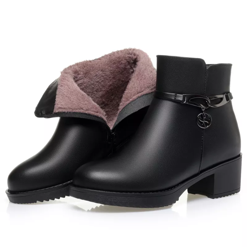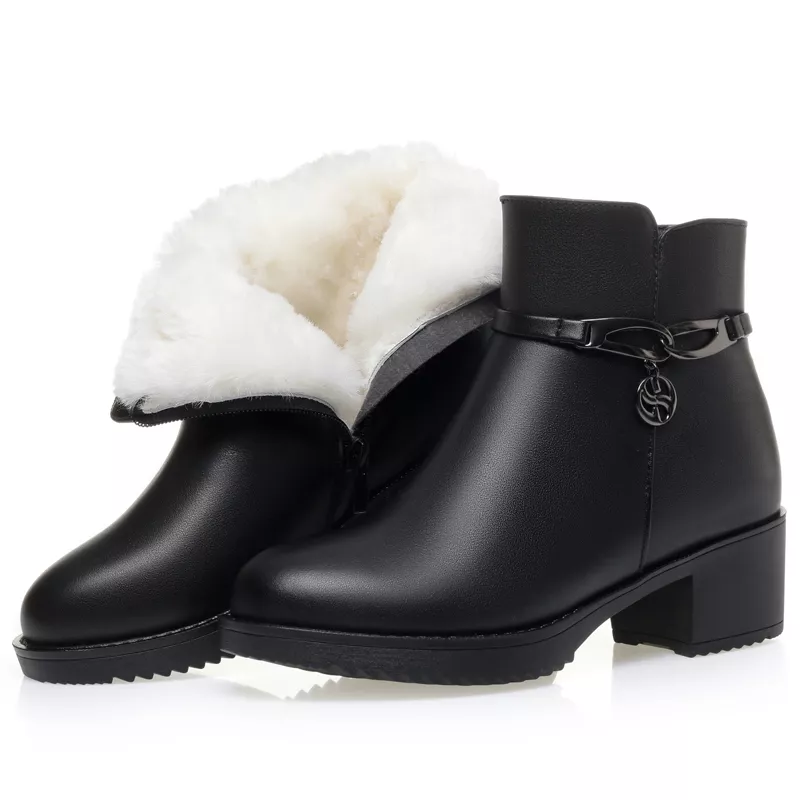 Women’s Genuine Leather Wool-Lined Winter Snow Boots with Zipper