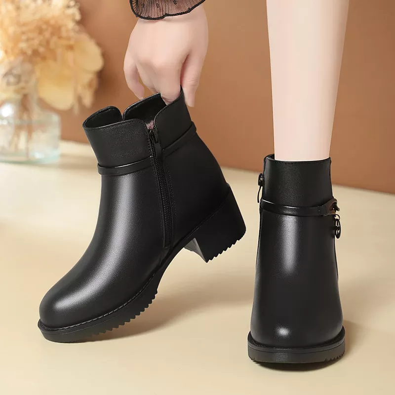 What makes these boots special is the balance of natural materials and thoughtful construction. The plush insole cushions your steps, while the wool lining wraps your feet in cozy warmth. A supportive square heel measuring approximately 1.2 to 2 inches adds gentle lift without sacrificing comfort. The ankle-height design offers flexibility and easy movement, and the side zipper allows quick on-and-off wear.
